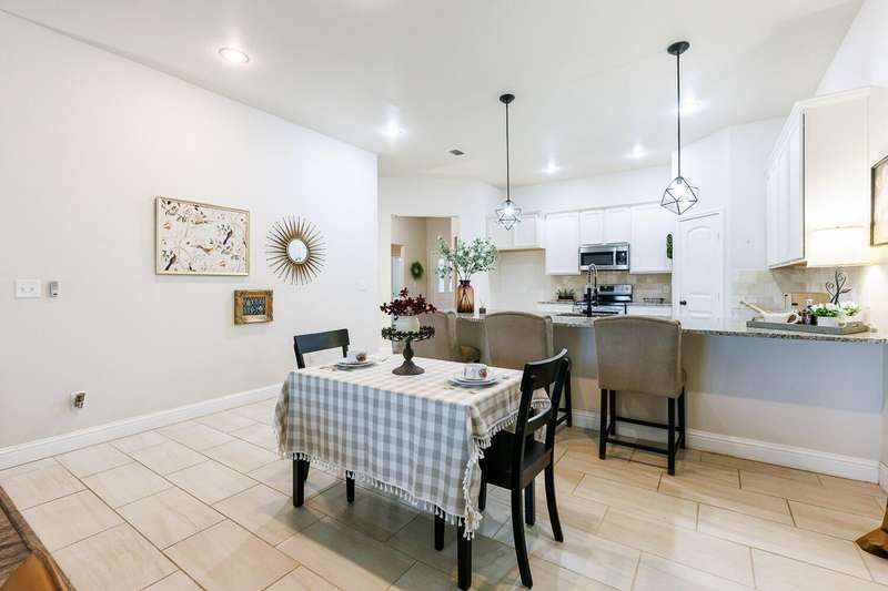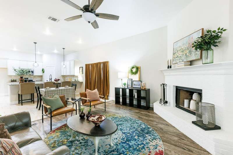 Recently price dropped a total of $7,000!! She's a really cute and clean 3/2/2 with 1914 sq ft. and a brand new roof! The Primary Suite is isolated and has a separate tub and shower with two sinks and a WC. The primary closet is amazing and connected to the laundry room. The home sits on a corner lot, newer tough shed, an extended patio with wood accent features for creating ambiance. This one is clean, gently lived-in, and has an isolated Primary Suite. Hartman just completed the Roof in September 2025. The Fence has been recently stained. This home has a TV mount above the fireplace (peek behind the floral picture). Other TVs will convey with the home. Come enjoy life at Milwaukee Ridge -