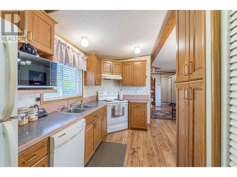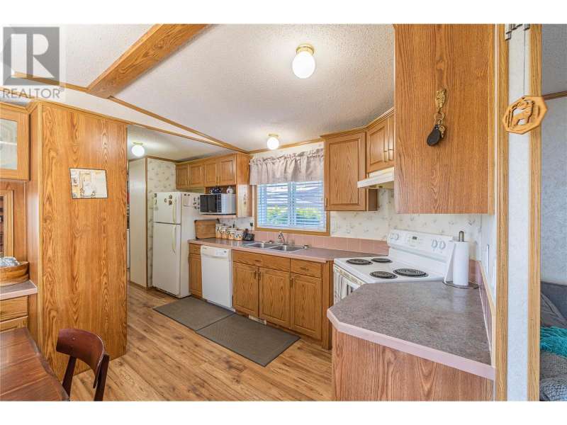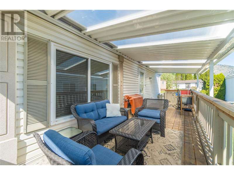 Welcome to this well cared for 3-bedroom, 2-bathroom manufactured home in the welcoming community of Dallas. This home features a bright, open layout with vaulted ceilings and numerous upgrades including high-end laminate flooring, bathroom tile, newer skirting, and updated electrical. The spacious master bedroom includes a full ensuite, and the home comes equipped with 5 appliances, central A/C, and a newer hot water tank and furnace. Enjoy outdoor living on the large, covered sundeck, or relax in the private, fenced yard complete with a garden area and shed. There’s parking for up to 4 vehicles, making it ideal for families. One small pet (under knee height) allowed with park approval. Park will sign site lease. (id:58403)