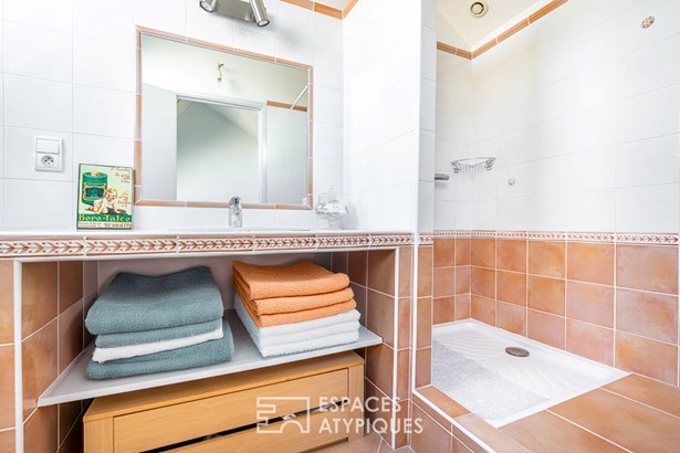 Two bedrooms, an office, a bathroom, a separate toilet, and a laundry room complete this floor. On the upper floor, a master suite stands out as a true cocoon: a custom-made dressing room, private bathroom with toilet, and a cozy atmosphere under the eaves. The whole is distinguished by its authentic character, its preserved architectural details, and the soul of the place, palpable with every step.