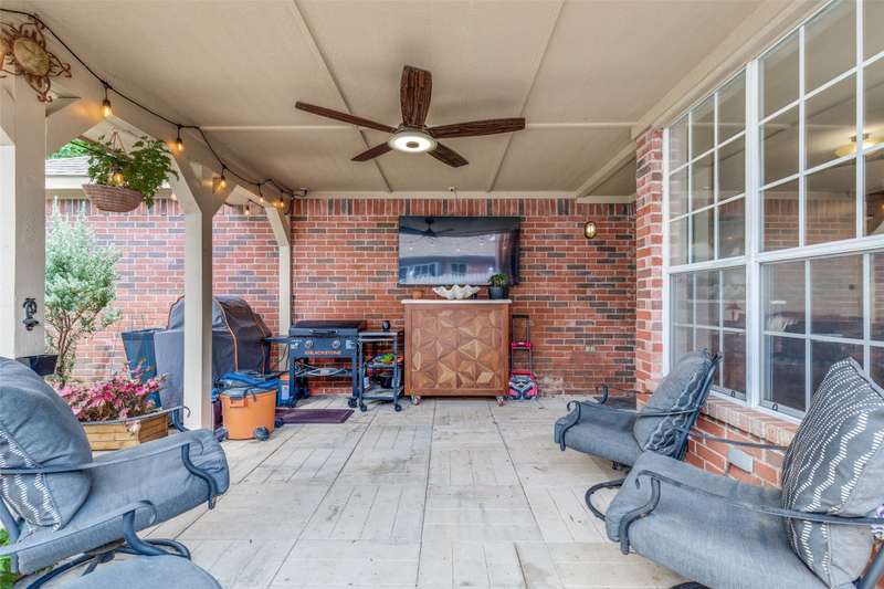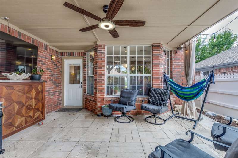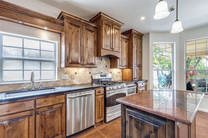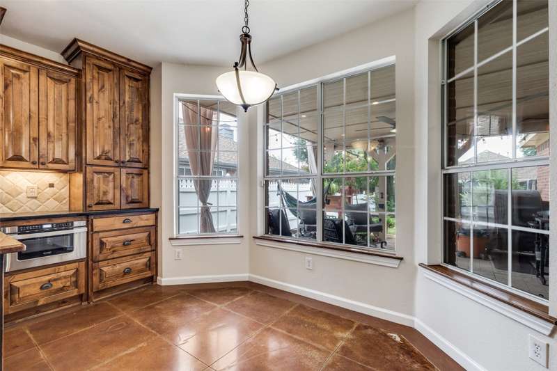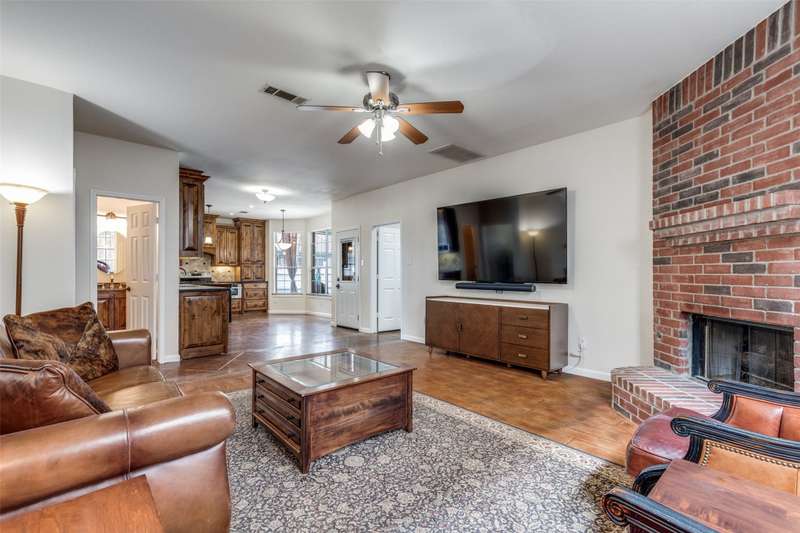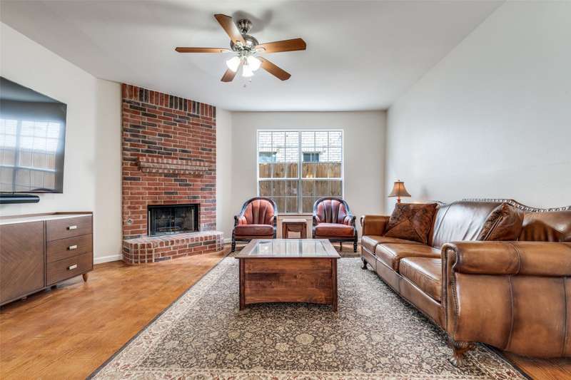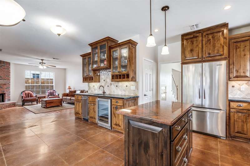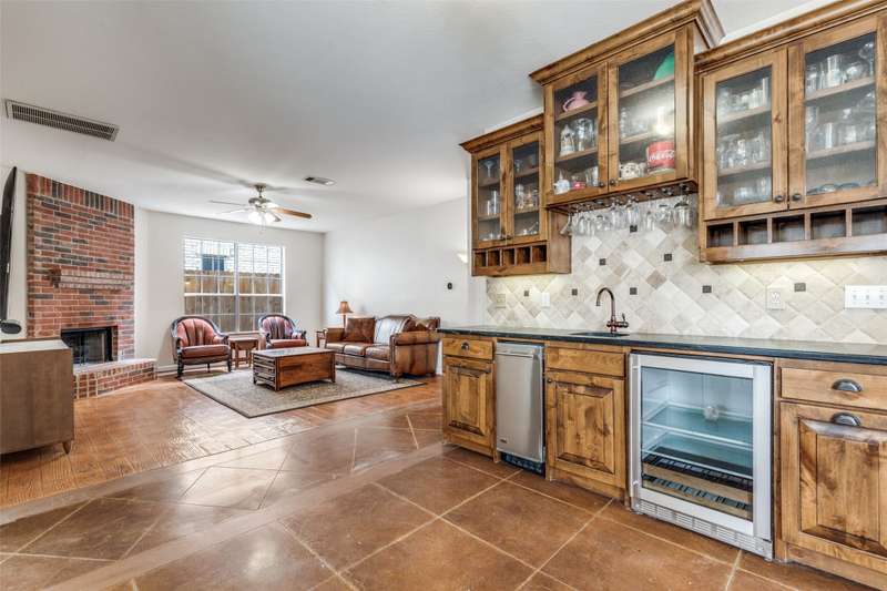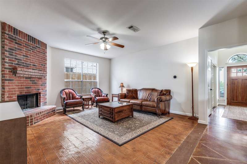 LOCATION, LOCATION, LOCATION! With easy access to George Bush Turnpike and the nearby North Dallas Tollway, this terrific North Dallas home is just minutes away from shopping, highly acclaimed private schools and restaurants in all directions! Both DFW and Love Field airports are within a 30-minute drive. Equally important, numerous improvements have been made to the property to enhance function and aesthetics. The 4-bedroom two-story home has two full baths and a handy powder bath. There is a study that could be a second living area and two dining areas. The design was thoughtfully planned to allow restful bedrooms upstairs and spacious public areas created for family activities and entertaining on the first level. The appealing front elevation features a brick exterior with a distinctive front door and stone borders at the flowerbeds. Step inside to immediately see that the home was planned to provide an easy, comfortable lifestyle. Low maintenance flooring is throughout the homeno carpet anywhere! The kitchen and baths have been updated, and painting has been done inside and out. Looking for easy maintenance? Most of the flooring downstairs is durable concrete. The kitchen, breakfast and dining areas are stained, scored concrete. The living room is stained wood-patterned stamped concrete, and the office is non-scored stained concrete. Flooring on the stairs and in all bedrooms is engineered wood. The kitchen had a complete remodel including cabinets, countertops, backsplash and appliances. A wide hutch was added with abundant storage, a bar sink, wine cubbies and a wine fridge. At the heart of the home is a spacious living area complete with a brick fireplace. The master bath was also updated with cabinetry, shower enclosure and a free-standing tub. Attractive tile was added to the second tub surround, and the powder bath was updated. But it doesnt stop there! Owners will enjoy the outdoors on the large patio with a cover, fan and TV mount.