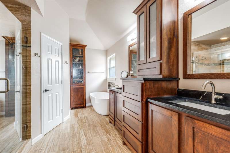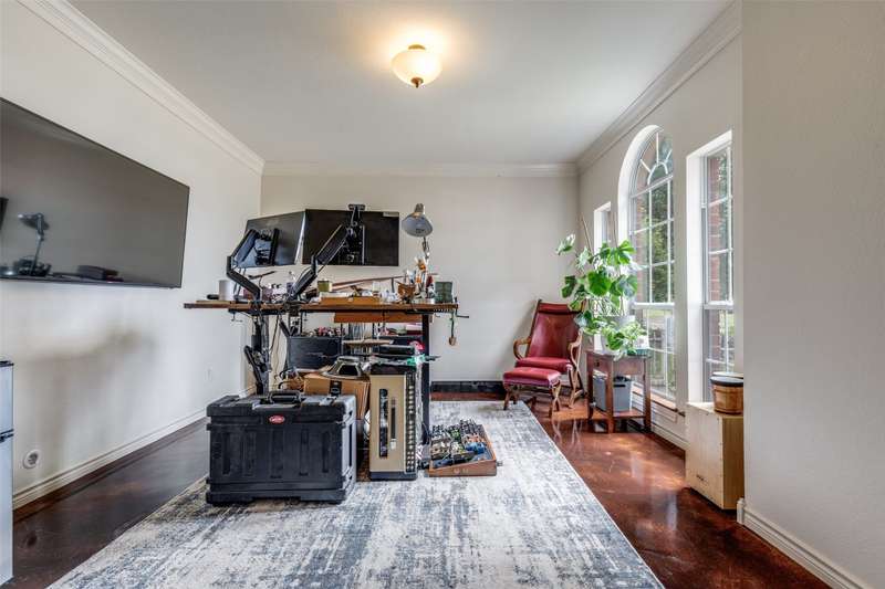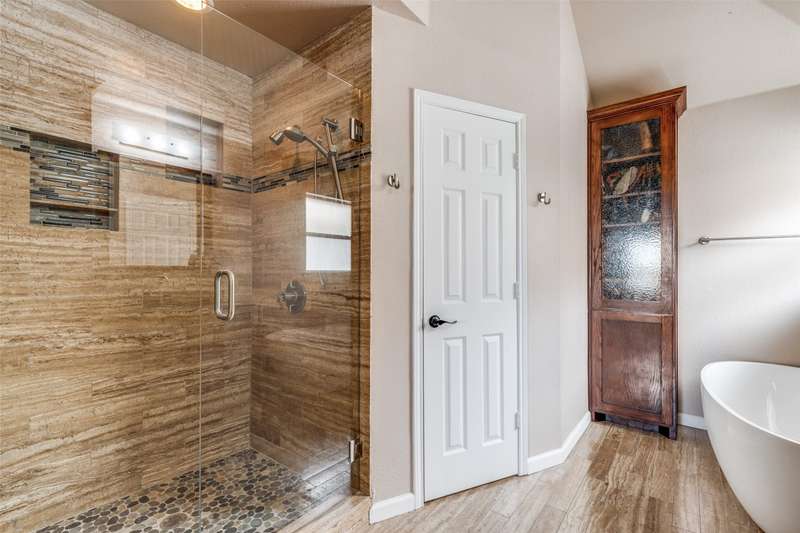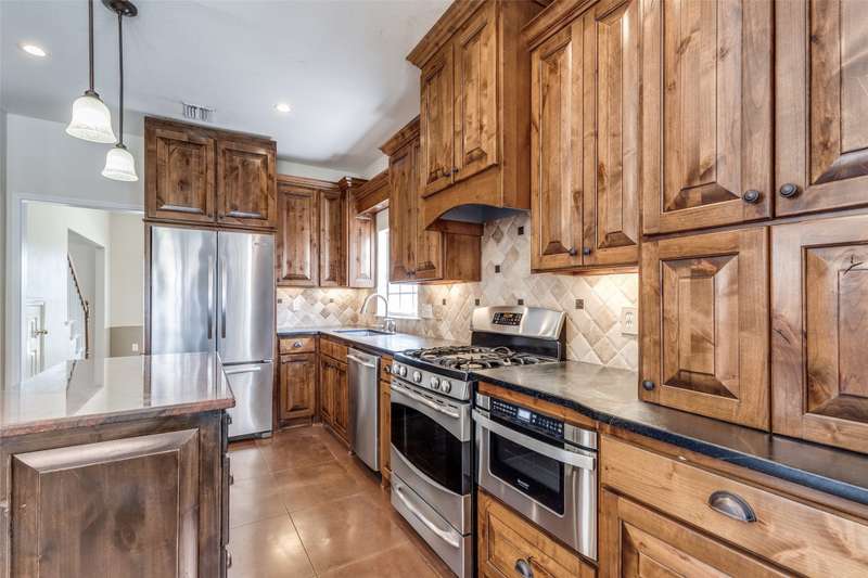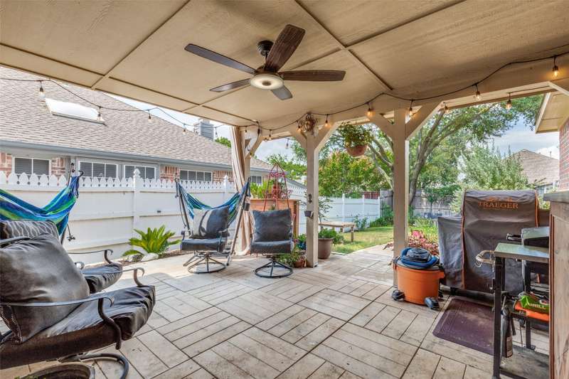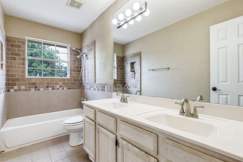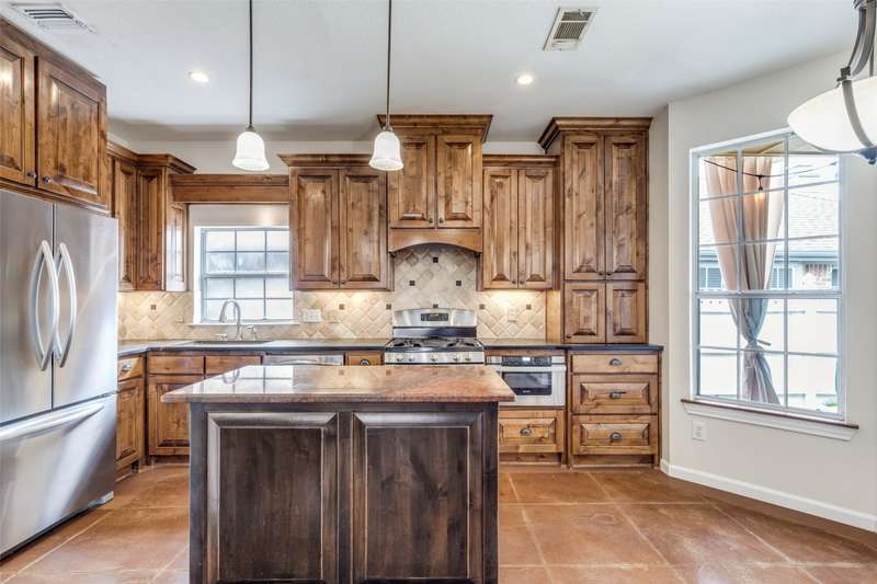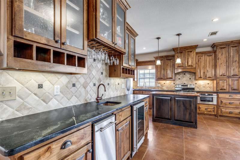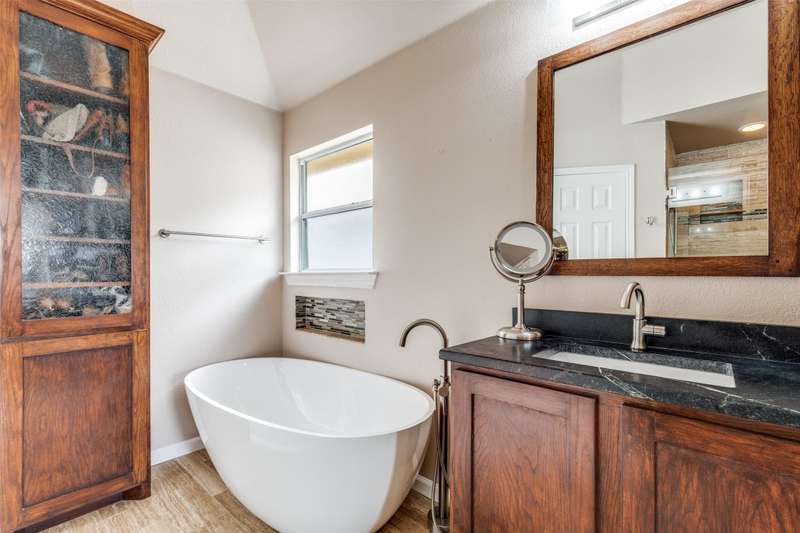 LOCATION, LOCATION, LOCATION! With easy access to George Bush Turnpike and the nearby North Dallas Tollway, this terrific North Dallas home is just minutes away from shopping, highly acclaimed private schools and restaurants in all directions! Both DFW and Love Field airports are within a 30-minute drive. Equally important, numerous improvements have been made to the property to enhance function and aesthetics. The 4-bedroom two-story home has two full baths and a handy powder bath. There is a study that could be a second living area and two dining areas. The design was thoughtfully planned to allow restful bedrooms upstairs and spacious public areas created for family activities and entertaining on the first level. The appealing front elevation features a brick exterior with a distinctive front door and stone borders at the flowerbeds. Step inside to immediately see that the home was planned to provide an easy, comfortable lifestyle. Low maintenance flooring is throughout the homeno carpet anywhere! The kitchen and baths have been updated, and painting has been done inside and out. Looking for easy maintenance? Most of the flooring downstairs is durable concrete. The kitchen, breakfast and dining areas are stained, scored concrete. The living room is stained wood-patterned stamped concrete, and the office is non-scored stained concrete. Flooring on the stairs and in all bedrooms is engineered wood. The kitchen had a complete remodel including cabinets, countertops, backsplash and appliances. A wide hutch was added with abundant storage, a bar sink, wine cubbies and a wine fridge. At the heart of the home is a spacious living area complete with a brick fireplace. The master bath was also updated with cabinetry, shower enclosure and a free-standing tub. Attractive tile was added to the second tub surround, and the powder bath was updated. But it doesnt stop there! Owners will enjoy the outdoors on the large patio with a cover, fan and TV mount.