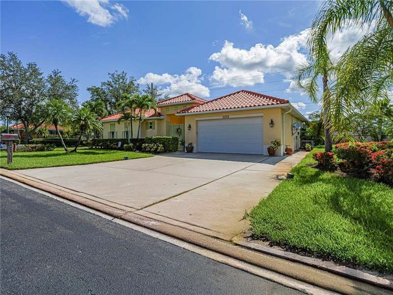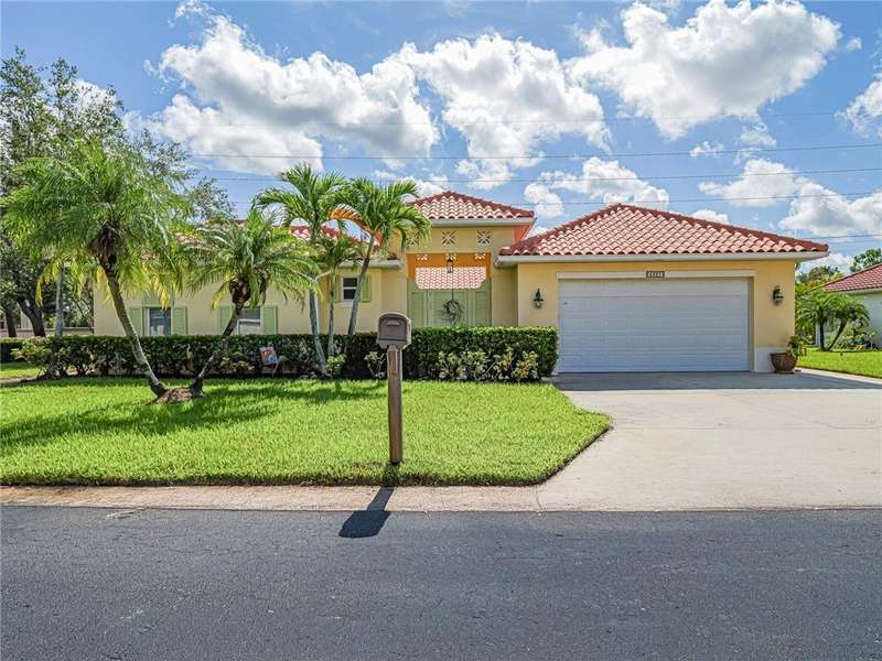 PRICED TO SELL!! Exquisite Mediterranean courtyard pool home in a premier gated community of just 41 homes. Features a grand 24'x23' living room with tray ceilings, 20'x20' Mediterranean tile, and a private cabana suite with full bath. Enjoy the courtyard pool, built-in BBQ, plantation & accordion shutters, home re-piped in 2024. Elegant, spacious, and perfect for indoor-outdoor living. Low HOA and resort-style serenity await!