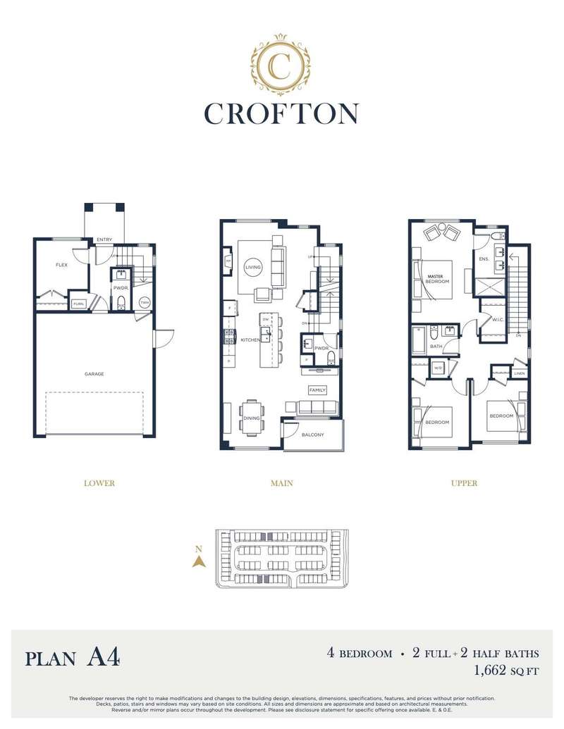 Welcome to CROFTON, the newly constructed final phase in Willoughby Heights by Atrium Developments. Offering some of the largest, move-in ready 3 and 4 bedroom townhomes on the market. Designed for modern families, these homes feature open-concept spacious layouts, bright and stylish interiors, and over-height double-car garages for added convenience. Gorgeous LG kitchen appliances with 5-burner gas range and A/C standard in all homes. Offering a prime location close to top-rated schools, parks, shopping, and transit. Crofton is Langley's BEST value offering the perfect blend space, comfort, and accessibility. Come and view our beautifully staged show homes. Sales Centre is open on Saturdays and Sundays, from 1–5 PM or by appointment. Enter through home #67.