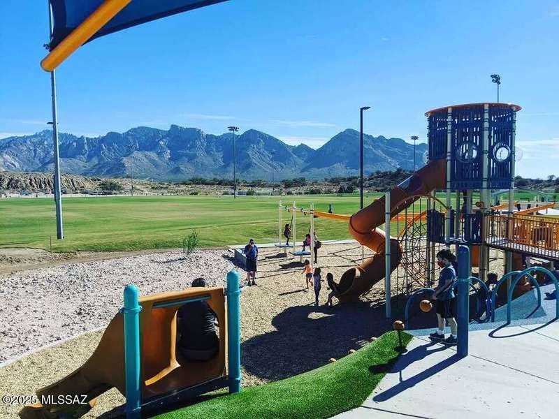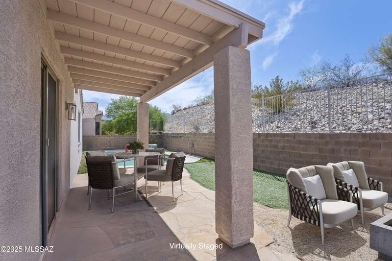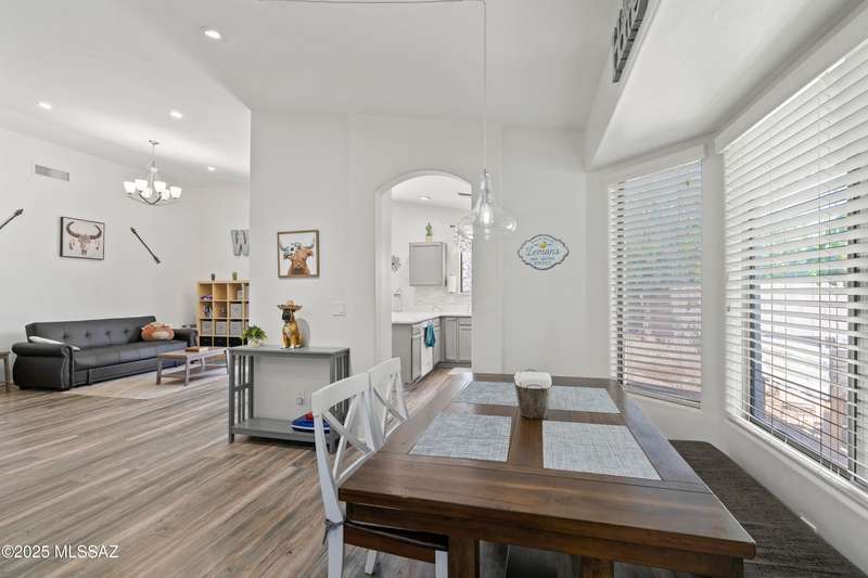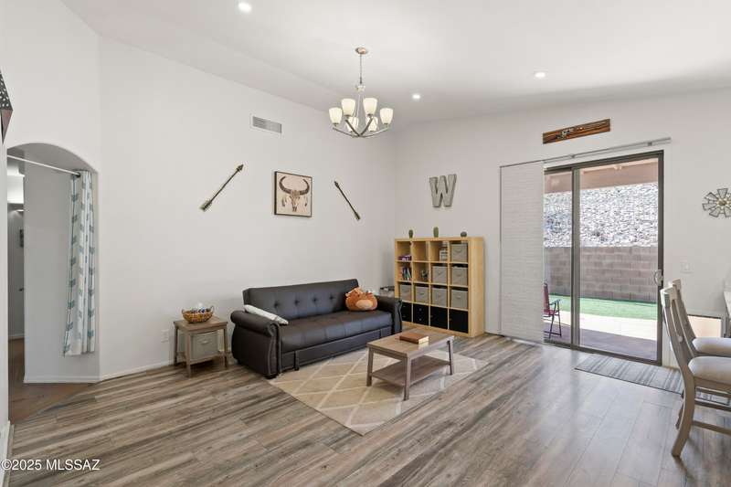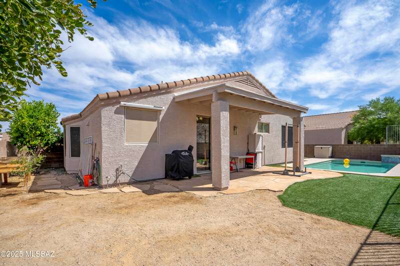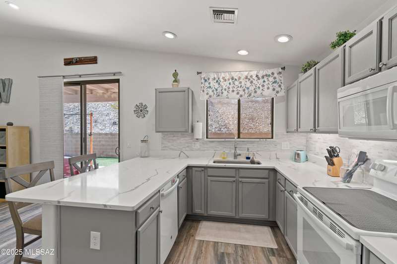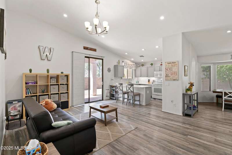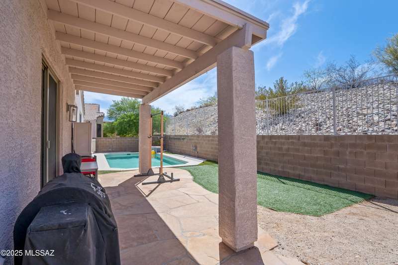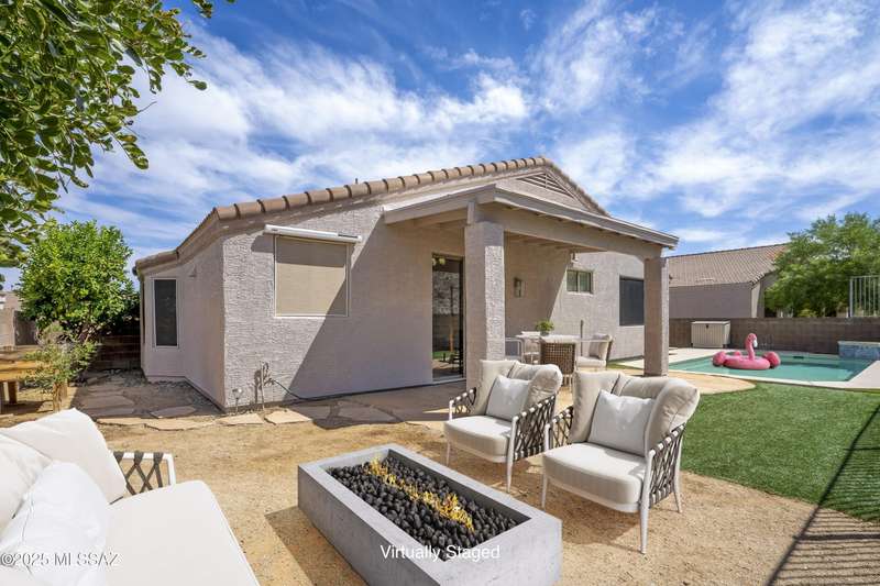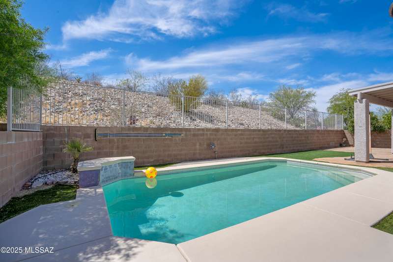 Welcome to Monterra Knolls, perfectly situated in central Oro Valley--just steps from Naranja Park and minutes from top-rated schools, hiking, shopping, and dining. This beautifully updated home offers a bright open floor plan with high ceilings, luxury vinyl plank flooring, and fresh interior and exterior paint. The kitchen features quartz counters and a generous peninsula, ideal for gatherings. Outside, relax in your private backyard with a covered patio, turf, and a sparkling pool with new equipment--all with no rear neighbors. The spacious primary suite includes a walk-in closet and pool views, while the oversized 3-car garage provides plenty of storage and room for hobbies.