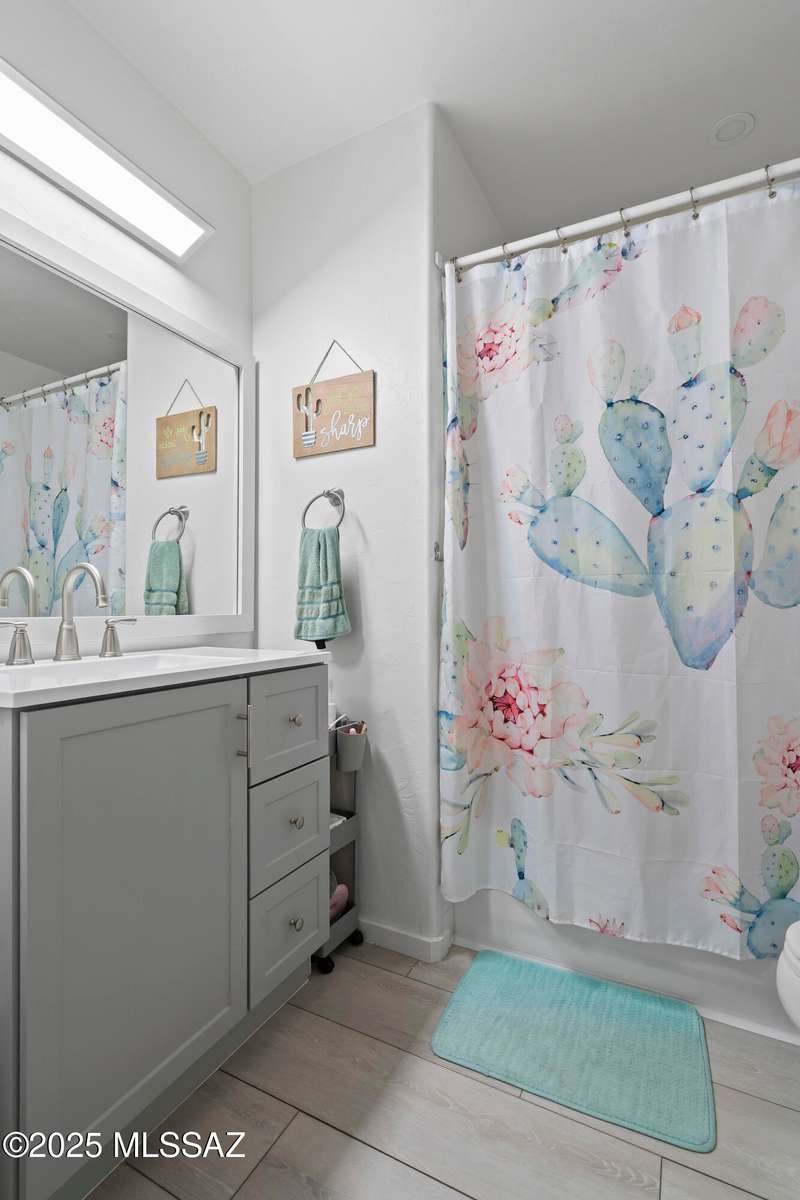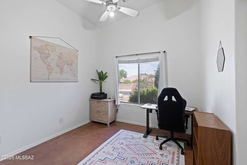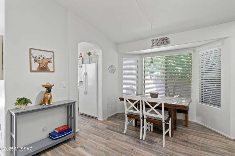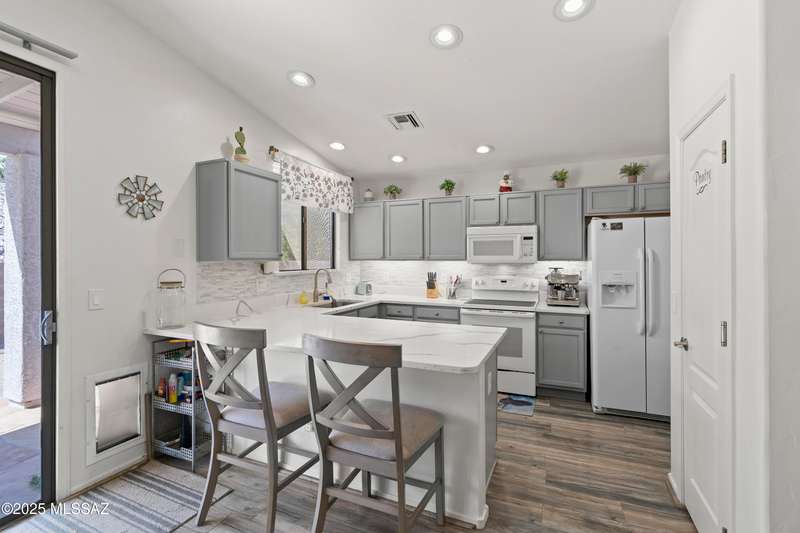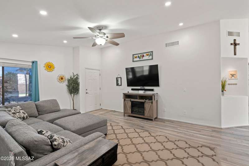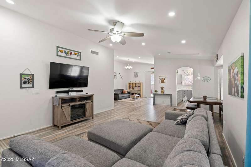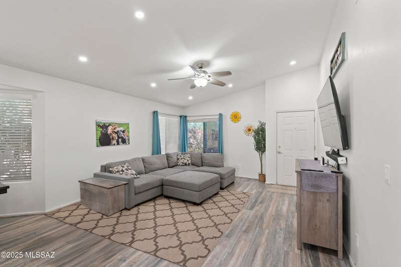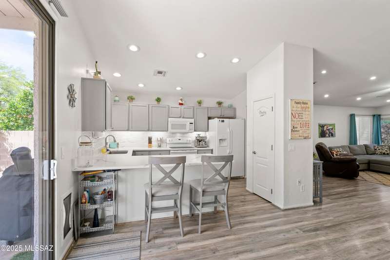 Welcome to Monterra Knolls, perfectly situated in central Oro Valley--just steps from Naranja Park and minutes from top-rated schools, hiking, shopping, and dining. This beautifully updated home offers a bright open floor plan with high ceilings, luxury vinyl plank flooring, and fresh interior and exterior paint. The kitchen features quartz counters and a generous peninsula, ideal for gatherings. Outside, relax in your private backyard with a covered patio, turf, and a sparkling pool with new equipment--all with no rear neighbors. The spacious primary suite includes a walk-in closet and pool views, while the oversized 3-car garage provides plenty of storage and room for hobbies.