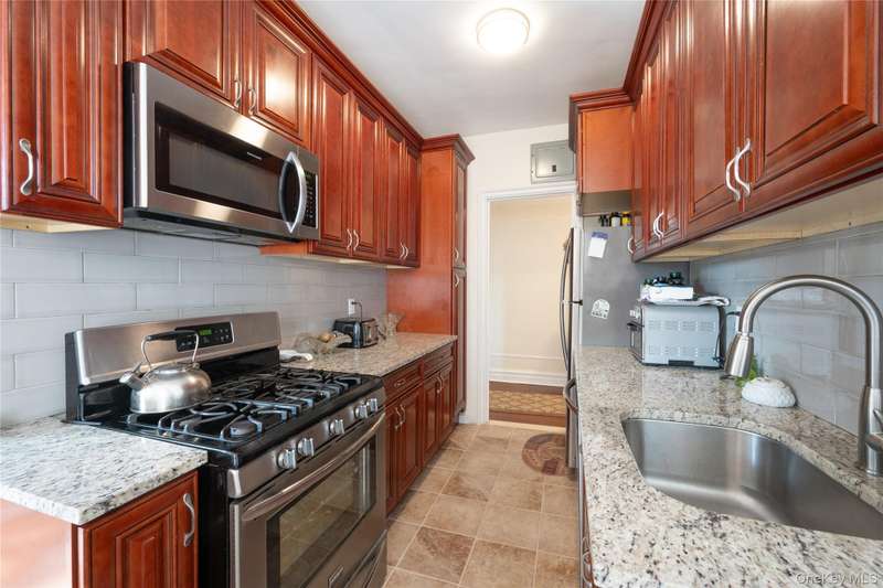 Welcome to Bronxville Terrace, a very popular financially sound coop with so much to offer! This high floor one bedroom is move in ready, and offers a beautifully renovated chefs kitchen and upgraded bath, east and south exposures with bright light all day and immaculate condition. The home features high ceilings, hardwood floors and classic archways offering a fabulous pre war feel. The living room and breakfast area face east for lovely morning sun while enjoying your coffee and the bedroom faces south with bright light all day. Bronxville Terrace offers charming Tudor details and many recent upgrades: new thermopane windows; new lobby video security, newly refreshed lobbies and hallways, new facade restoration, state of the art cashless laundry rooms and new exterior signage. Other features include stunning gardens, park w/grills, Buildinglink, FIOS & Optimum. Location is a commuters dream: two blocks to Metro North, 30 min to Grand Central, easy access to Parkways & I-87. One block to neighborhood shopping including Starbucks, CVS, Dunkin, salon, take out, deli and UPS Store. Bronxville Village, Bronx River Reservation Park & Farmers Market are only 1/4 mile away. Easy access to Cross County, Stew Leonards & Ridge Hill shopping. Maintenance excludes STAR deduction. Two cats are welcomed, but only service dogs. $64/month assessment until 8/27 for new windows.