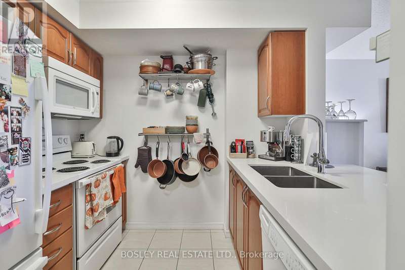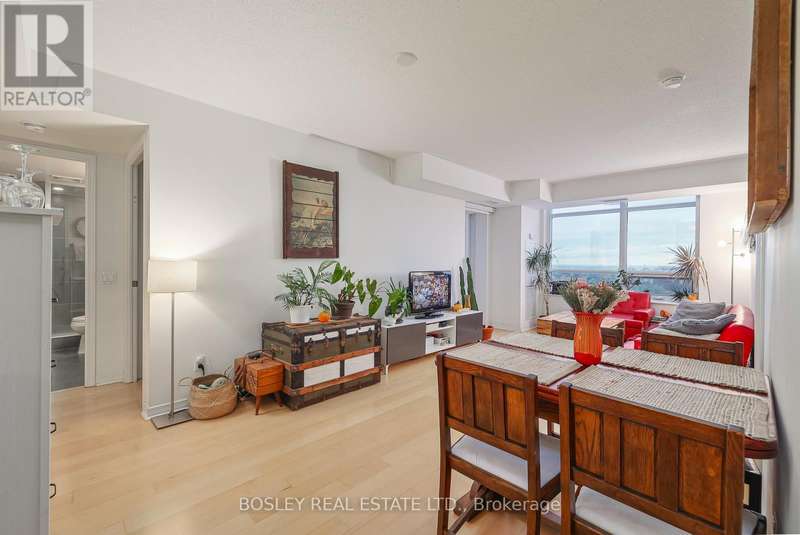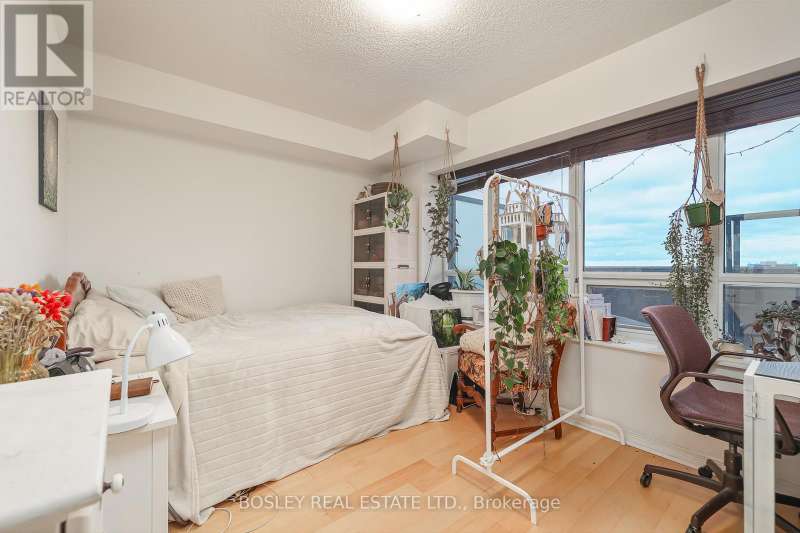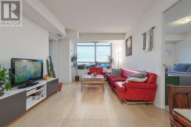 Spectacular, sun-drenched home at Heintzman Place! Soaring above the city on the 20th floor, this suite offers breathtaking unobstructed views of the skyline and lake. The highly desired split 2-bedroom, 2-bath layout provides exceptional functionality across 895 sq ft of bright, open-concept living space. The savvy, bistro-style galley kitchen is ideal for the urban cook, offering efficient design and seamless flow. A separate entry foyer provides practical space for daily essentials. The open-concept living and dining areas create an inviting setting for relaxing or entertaining. The generous primary suite includes a 4-piece ensuite, walk-in closet, and room for a king-sized bed, while the second bedroom features an oversized window and great natural light. Neutral finishes, upgraded flooring, and upgraded countertops offer a fresh, move-in-ready feel. Enjoy a large, private south-facing balcony with panoramic views, your own serene outdoor retreat in the city. Original owner. Includes garage parking and storage locker. Well run building with great amenities: 24hr concierge, gym, party room, library, BBQ terrace, pet wash station, visitor parking, bike storage + EV charging stations. (id:7434)