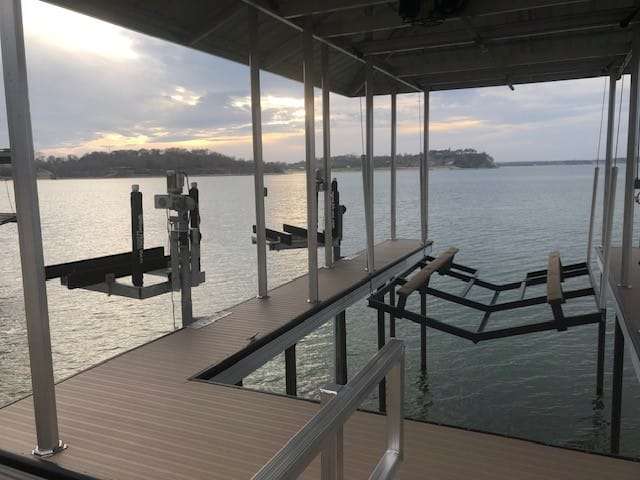 Privacy, Luxury, Proximity and Endless Lake Views! Welcome to a rare opportunity to own lakefront property on Eagle Mountain Lake. This exquisite 2.43-acre estate boasts a stunning 6,343sf luxury home, currently under construction, with impeccable attention to detail and premium custom features throughout. Designed by renowned architects Far + Dang, built by luxury home builder LR Fine Homes, interior design by Susan Semmelmann, with custom tile curation by Erin Adams Designs this estate promises to be a unique refuge upon completion. With the highest elevations and deepest waters of Eagle Mountain Lake, this house was designed with floor to ceiling windows for natural light, jaw dropping panoramic views and unlimited sunsets. For the true gourmet a kitchen with custom cabinetry, Subzero, Wolf and BlueStar appliances, custom wine case, wet bar and scullery. The spacious primary suite features a private patio, fireplace, coffee bar, large bathroom and custom closet. An indoor atrium ideal for growing herbs and enjoying morning sunrises. The property has an additional 1,200sf air conditioned garage providing ample space for vehicles, with a detached 360sf air conditioned building, perfect for an office or art studio. A newly constructed dock awaits, complete with a boat slip and two jet ski lifts. Over 2,000sf of outdoor deck space with a 40 long pool, tanning ledges and heated spa. Gated entry, solar power, with room for sports courts or helipad. Adjacent to the neighborhood is the 3,621-acre Fort Worth Nature Preserve. Downtown Fort Worth is only 14 miles and the Stockyards 11 miles, YeeHaw!