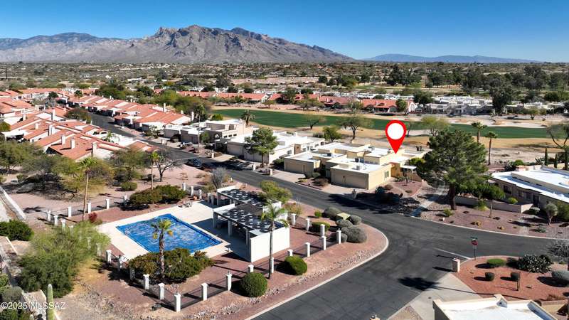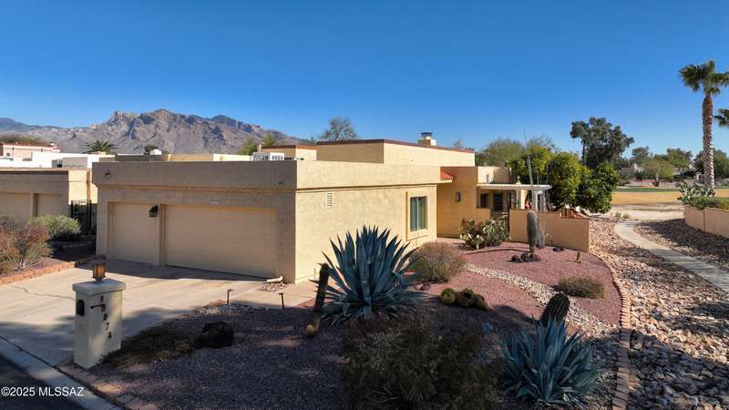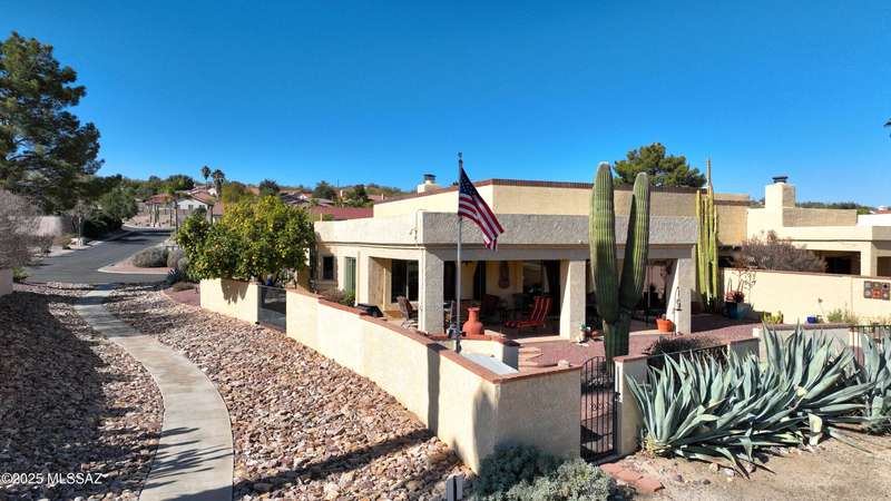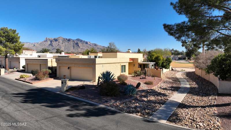 Discover resort-style living in this elegant townhome perfectly situated on the 5th fairway of Sonoran course at Omni Tucson National. 2500+ SF of spacious single-level living, this home blends comfort and charm. AZ outdoor living space is a highlight that features: mountain & golf course views, a majestic Saguaro cactus, lush landscape, covered patio, built-in BBQ, waterfall & a prolific grapefruit tree that also adds shade. Step inside to find a bright, cheery kitchen ideal for everyday living. Comfortable living room with fireplace and big dining room. Spacious primary suite offers access to patio, a luxurious bath with a soaking tub & separate shower. Generous guest bedrooms provide comfort & privacy for guests. 2-car + golf cart garage. Steps from the community pool.