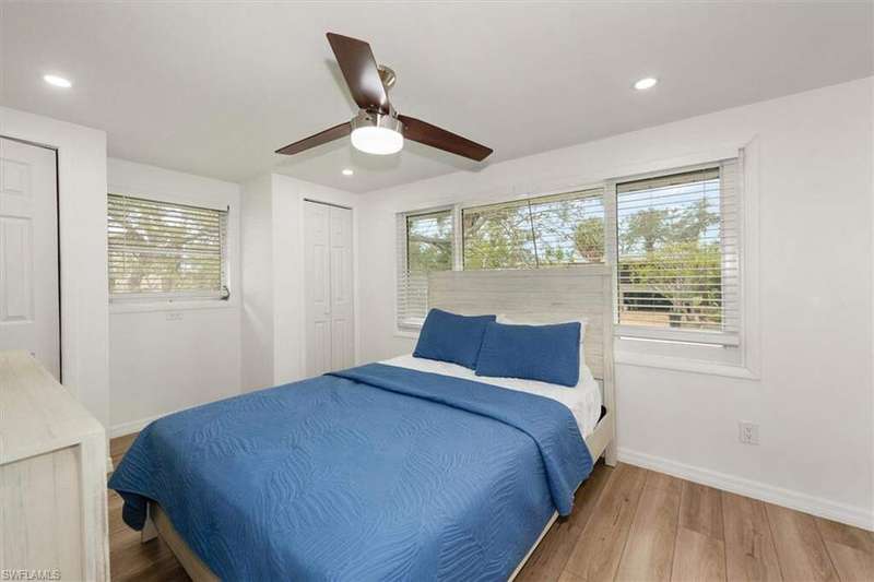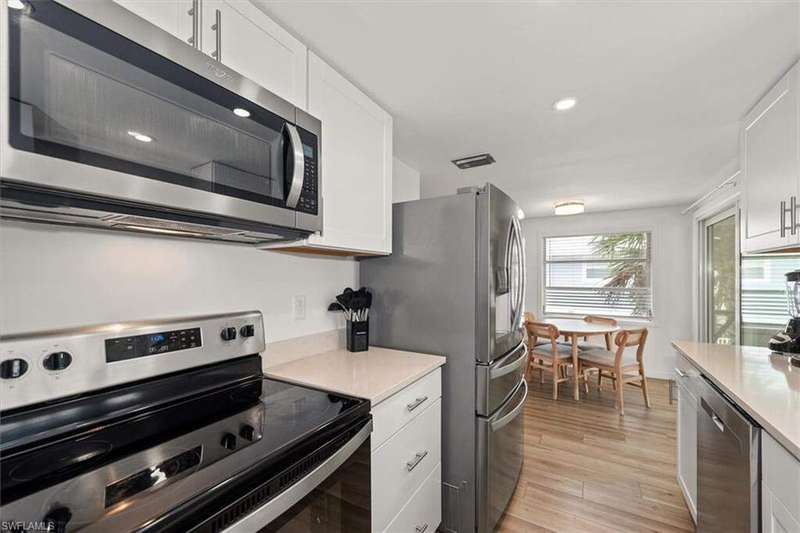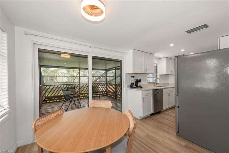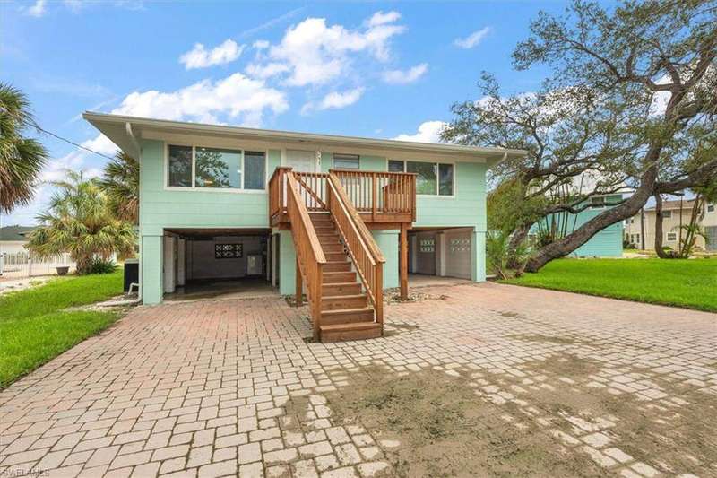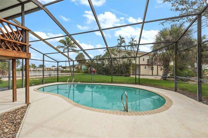 BEST priced elevated WEEKLY rental zone pool home on Ft Myers Beach, only steps from the white sands of the Gulf! This turnkey furnished heated pool home on Ft Myers Beach has been completely remodeled with LVT flooring throughout, bright white shaker cabinetry and an open floor plan. The kitchen also features quartz counters and stainless appliances and overlooks the main living space! Both ample sized bedrooms have their own private bathrooms with custom tiled walk-in showers and amazing natural light. Step outside to your screened upper balcony to enjoy your morning coffee and Tropical views. This remodel was fully permitted and includes a new roof, plumbing,electrical,AC system, and so much more! Perfect for the snowbird, investor, or a combination of the two. Did I mention the huge lot? Schedule your appointment today!