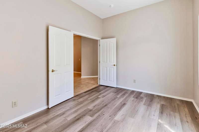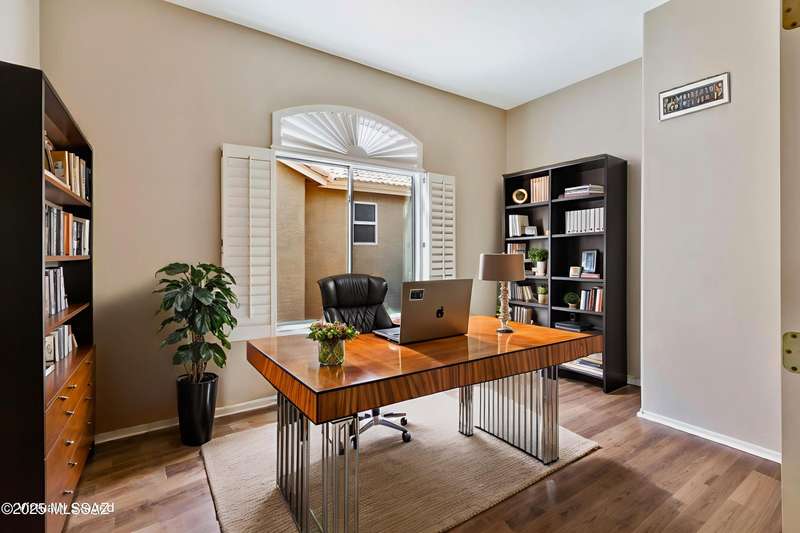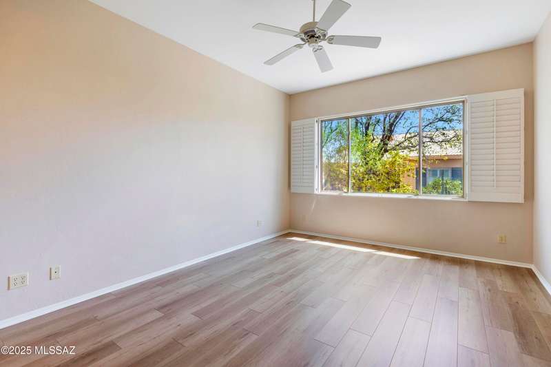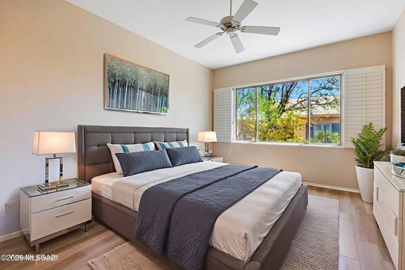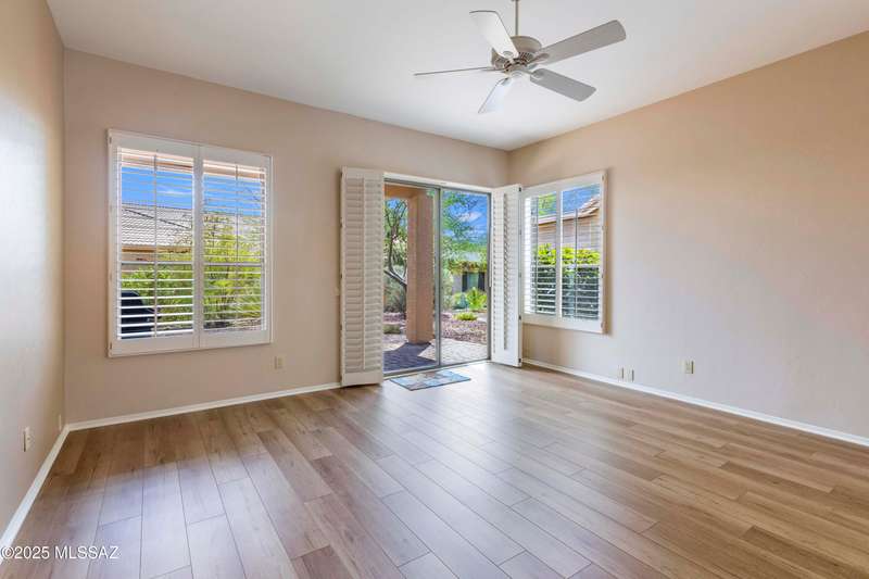 Elegantly Upgraded Naples Villa w/Private, Paved Extended Patio & Light, New Engineered Wood Floors Thru-out. Great Room Features Plantation Shutters, Updated Fan. w/ Sliders to Patio is Open to Kitchen which Features Maple Cabinetry, Quartz Counters, SS Farmhouse Sink, Newer SS Appliances, Tile Backsplash & Additional Storage. Spacious Main Bedroom w/Plantation Shutters & Fan, Opens to Updated Ensuite Bath. Executive Height Granite Counter w/Dual Sinks, Plus Updated Custom, Tiled Walk-in Shower. Den/Office also w/Plantation Shutters Boasts French Doors. Guest Rm is Adjacent to Upgraded Guest Bath also with Exec. Height Granite Counters & Newly Tiled Walk-in Shower. Interior is Newly Painted. Laundry Rm w/Whirlpool Washer & Dryer. Epoxy Coating on Driveway, Walkway & 2 Car Garage.