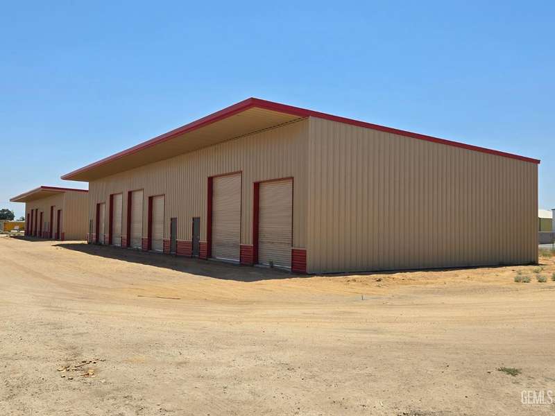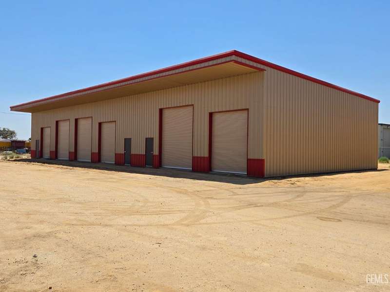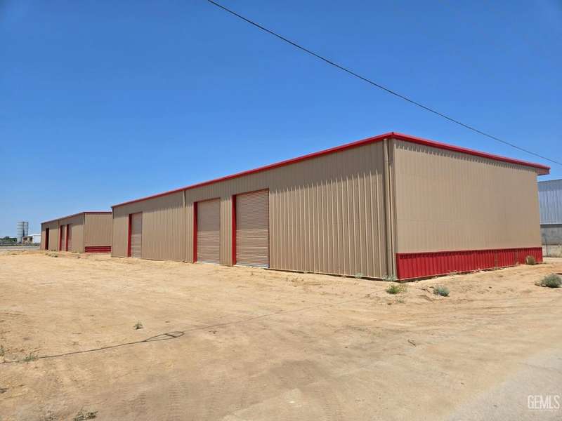 Shafter Minter Field MIT - New Industrial Metal Buildings for Lease - 2,000 to 12,000 sq ft divisible space. 14 ft roll up doors, 20 ft ceilings, slanted roof, 8 ft front overhang, 8 ft concrete approaches, LED interior lighting, 1 pedestrian door. Each section is 50 ft deep. Perimeter security fencing with remote security entry & exit gate. Community bathroom with commode, sink & shower and shared trash dumpster on location. OPTIONAL UPGRADES: fenced storage area, water & air lines, private bathroom, water heater, shop sink.