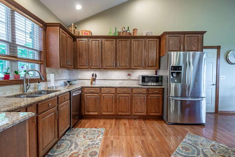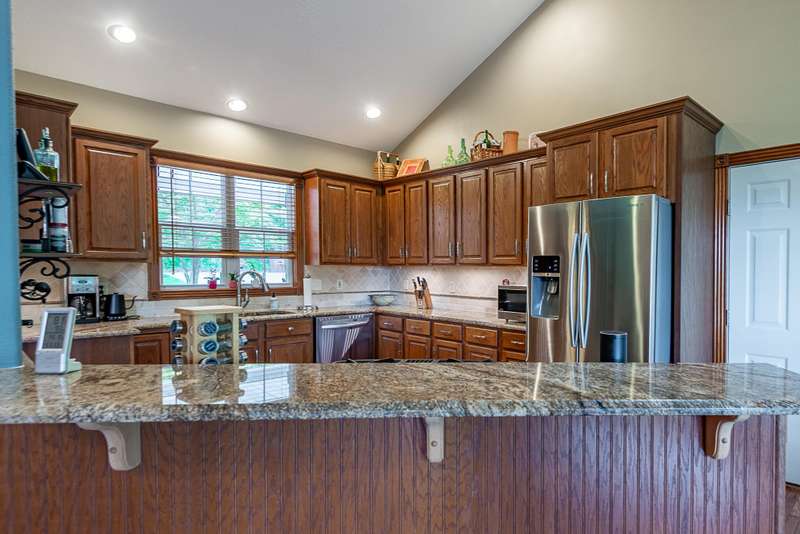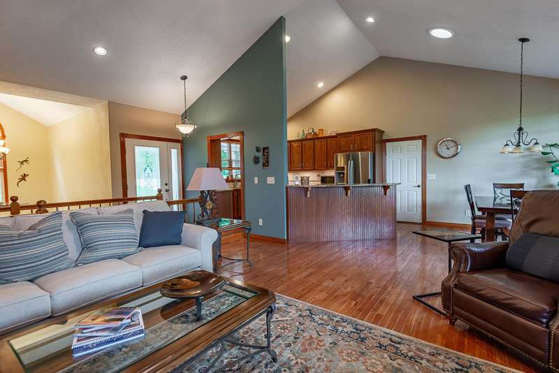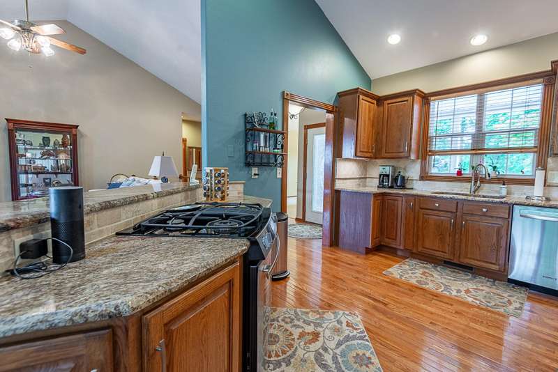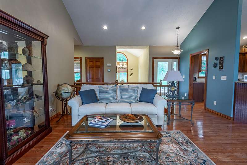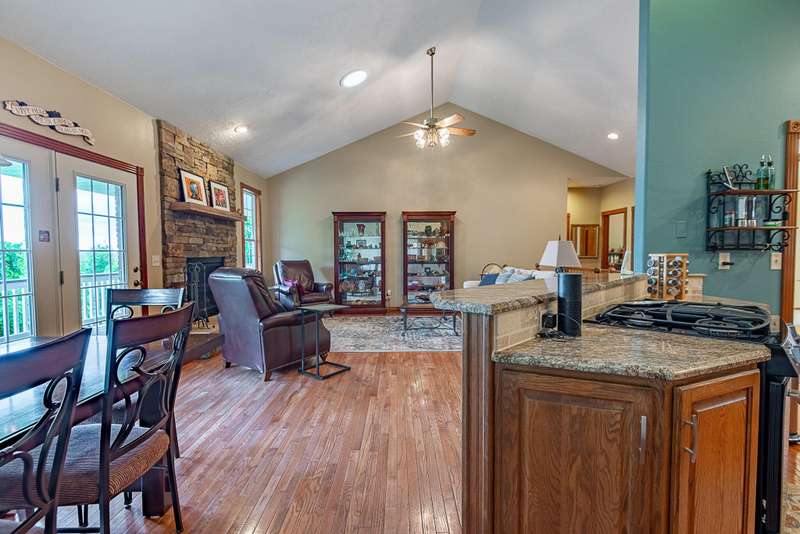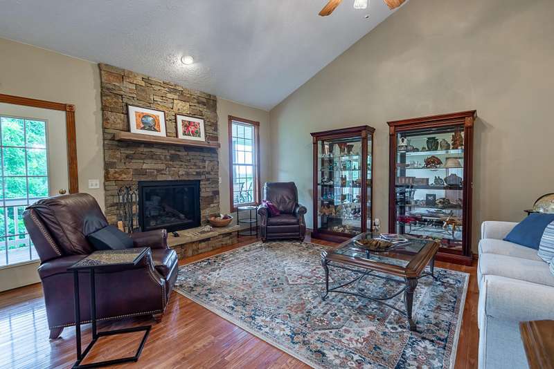 PRICE REDUCTION by Motivated Sellers!!Secluded Home Retreat on 5 acres - A Must-See!Tucked away in a peaceful setting with breathtaking views, this meticulously maintained 4-bed, 3-bath home offers over 3,000 sq ft of quality living space and thoughtful upgrades throughout. Built by Amish craftsmen in 2002, you'll immediately appreciate the attention to detail starting with the stunning great room, tall ceilings, and beautiful hardwood floors.The kitchen is both functional and stylish with granite countertops, a tile backsplash, and just enough privacy to keep the dishes out of sight while entertaining. Natural light floods the home thanks to strategically placed light tubes and large windows, making every space feel bright and welcoming. A cozy gas fireplace with ledgestone surround adds charm to the main living area.The spacious main-level primary suite offers direct access to the full-length covered deck, a serene spot to enjoy your morning coffee with forest views. The remodeled en suite bathroom features dual vanities, tile floor, a large walk-in shower with 2 shower heads and built-in seating, and a walk-in closet. Another main-level bedroom, full bath, and a versatile bonus room (ideal for a home office, dining, or music room) round out the main floor.Downstairs, the walkout basement is built for gathering with two large bedrooms, a spacious family room lined with windows, custom wood built-ins, and access to a patio through two sliding doors. There's also a wine closet, full bath, laundry, and ample storage throughout.Car lovers and hobbyists will love the 4-car garage setup: 2 attached and 2 detached bays, complete with built-in cabinets. Additional highlights: new roof (2025), HVAC (2019), fiber optic internet, propane heat, water softener, septic, shared well, and unsoiled concrete driveway.This home is more than a place to live - it's a lifestyle! Come see for yourself what makes it so special