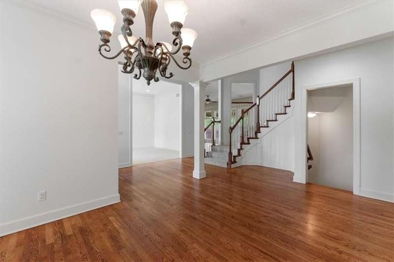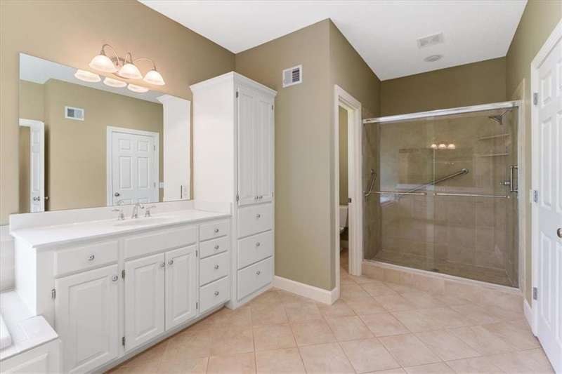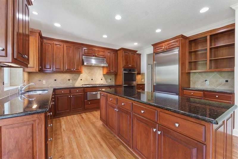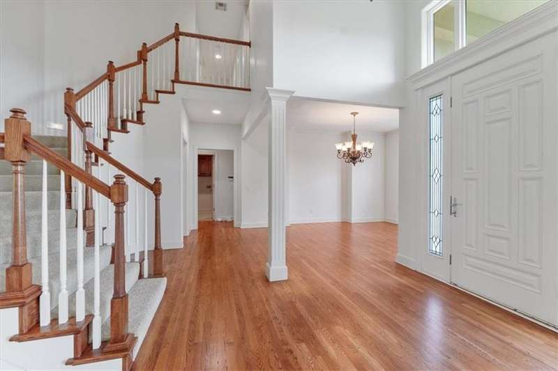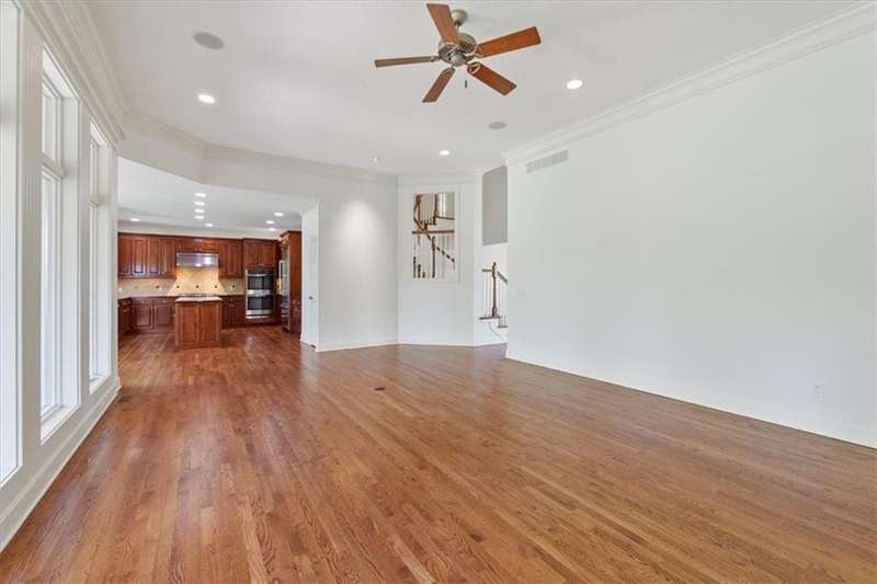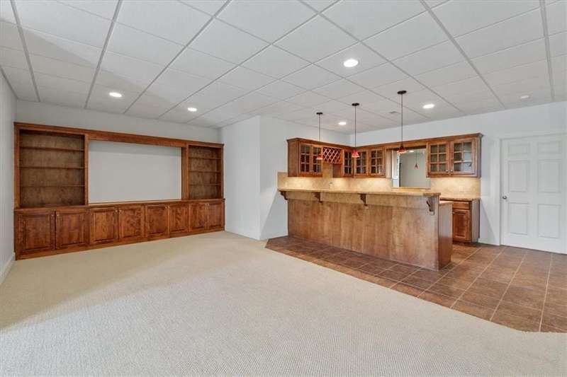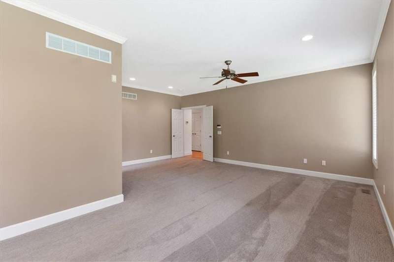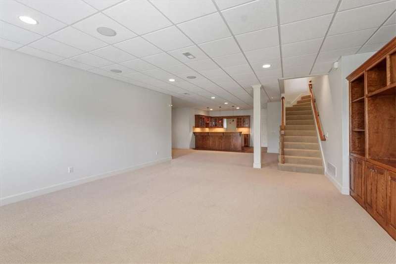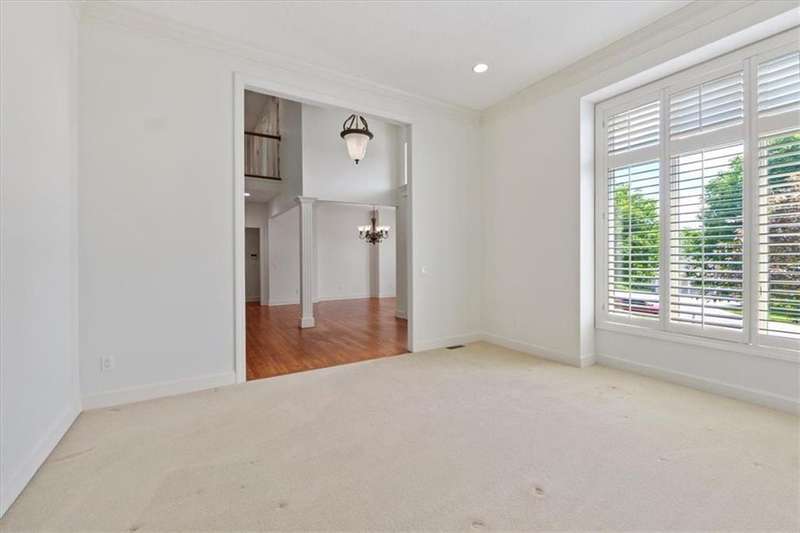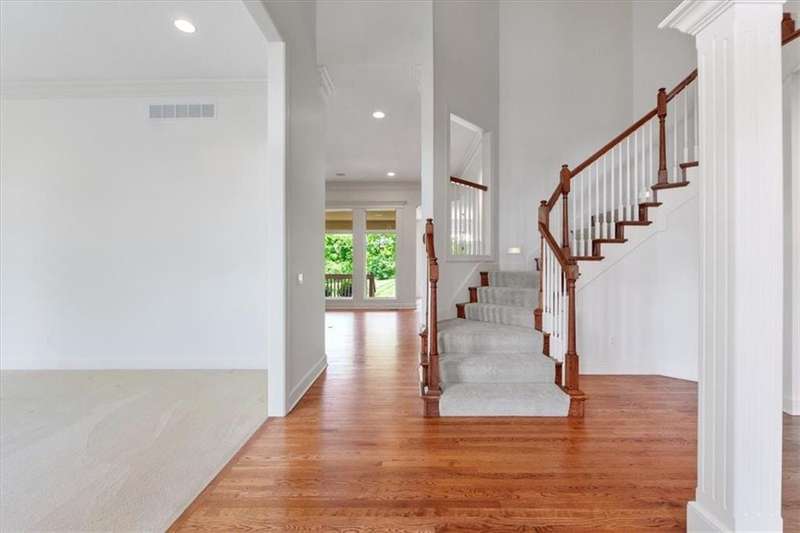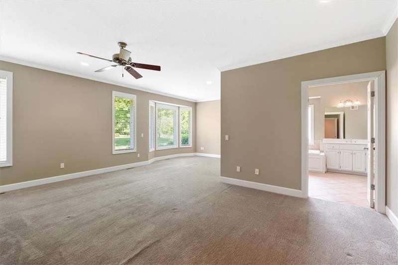 Welcome to this beautifully designed home in the sought-after Sunridge Estates of Blue Springs, offering over 5,500 square feet of elegant living space with four bedrooms and four and a half baths. From the moment you step inside, soaring ceilings and expansive floor-to-ceiling windows create a light-filled and open atmosphere, ideal for both entertaining and everyday living. The formal living room flows seamlessly into the dining area, with custom millwork, wood floors throughout the main floor, and built-in cabinetry add warmth and sophistication. The spacious kitchen, featuring cherry cabinets, granite countertops, a large walk-in pantry, and high-end appliances, including a Viking refrigerator, range, and warming drawer. The adjoining hearth room offers cozy charm and views of the private, wooded backyard. Step outside to enjoy the covered deck, walkout patio, and stone pathway, all perfect for gatherings or peaceful relaxation. The main-floor primary suite is a true retreat with a luxurious bathroom that includes dual vanities, a sun-soaking tub, generous countertops, and an expansive walk-in closet. A full laundry room just off the kitchen features ample cabinetry, a sink, and easy access to the oversized three-car garage, which boasts extra-deep bays and towering ceilings.Upstairs, youll find three additional bedrooms, two connected by a Jack and Jill bath, and a third with its own private en-suite and walk-in closet. The finished lower-level daylight basement offers tall ceilings, a gas fireplace, full wet bar with dishwasher and wine fridge, a full bath, and ample space for entertaining. The unfinished section provides substantial storage with built-in shelving and 12-foot ceilings. Additional features include dual HVAC systems (newer), two 50-gallon water heaters, plantation shutters on all front-facing windows, and a 50-year roof installed in 2019. This home offers a rare combination of elegance, function, and comfort in a prime location.