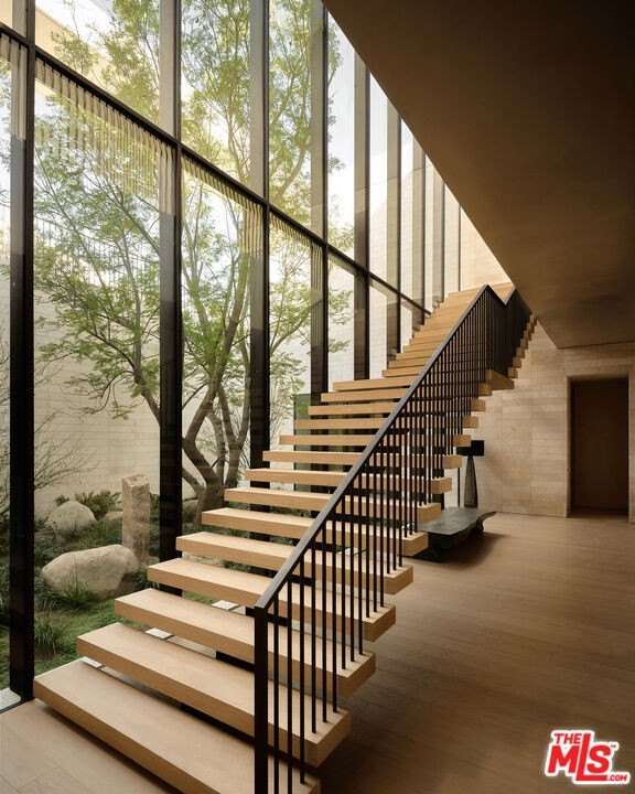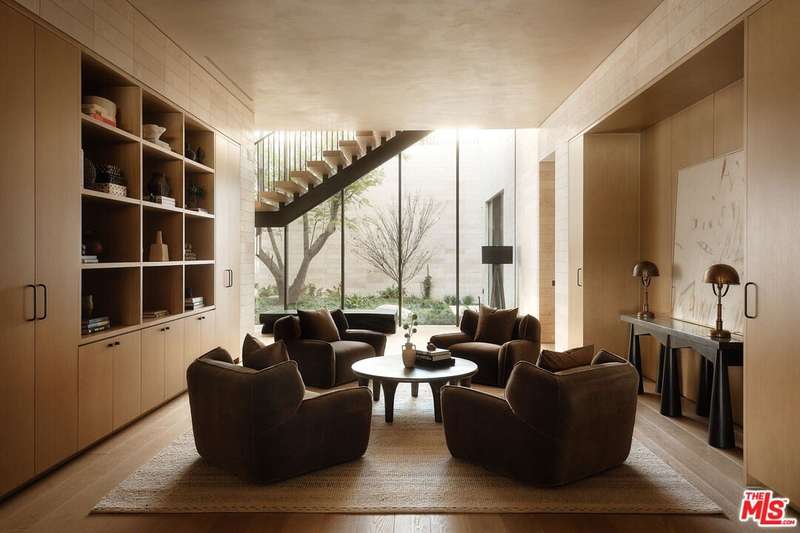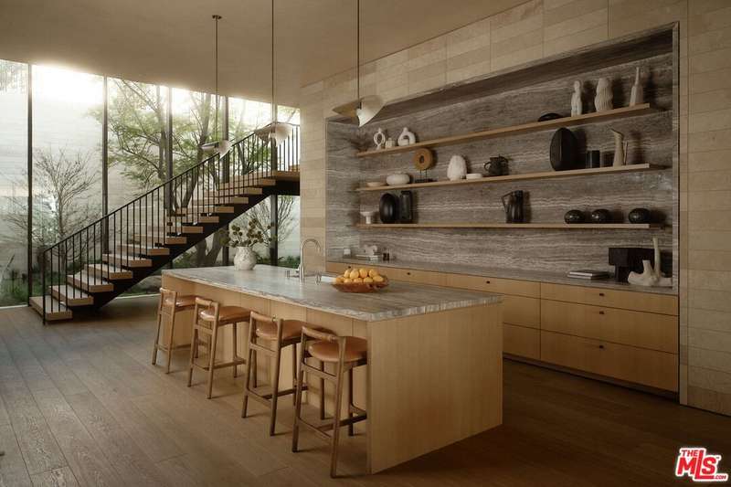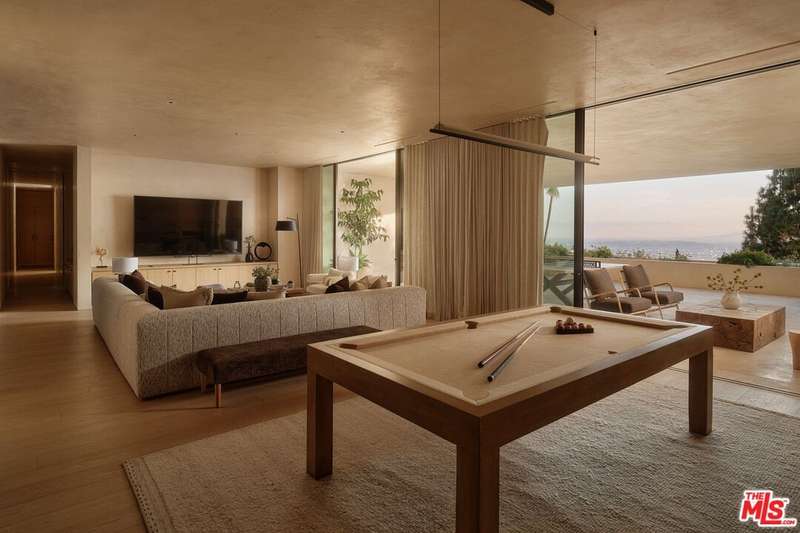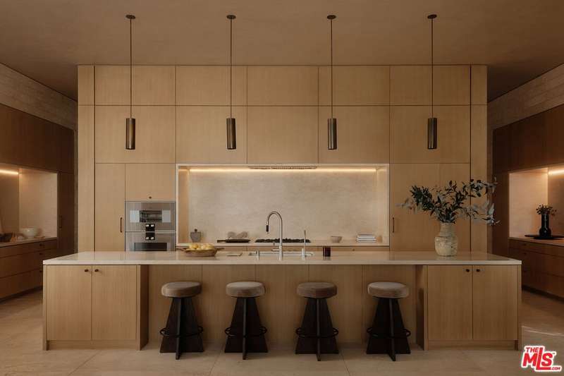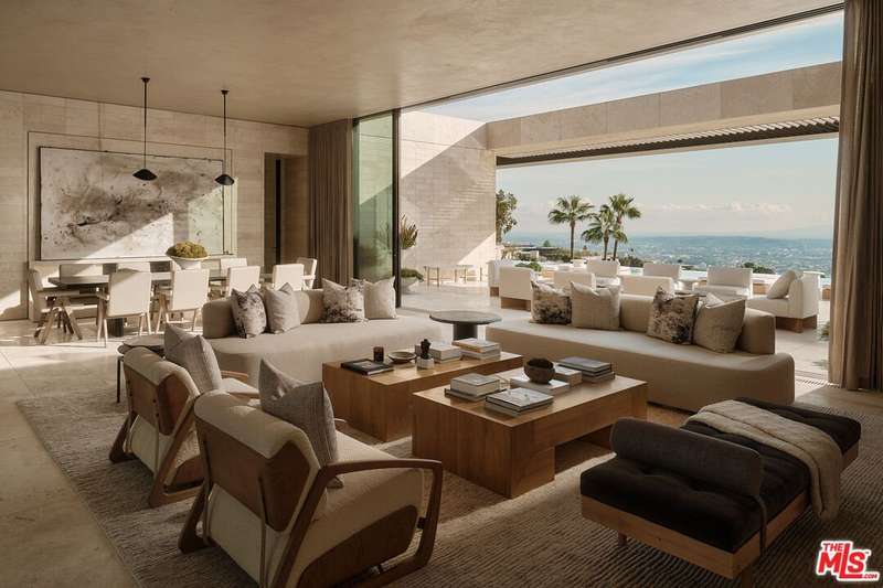 Designed by the internationally acclaimed architectural firm Woods + Dangaran, this extraordinary estate commands unparalleled 280 southern views, spanning from the glittering Los Angeles skyline to the vast expanse of the Pacific Ocean. Crafted with 200 tons of hand-selected Turkish Travertine, the residence is a masterpiece of modern design, where floor-to-ceiling glass panels and White Oak accents invite abundant natural light, creating an atmosphere of warmth and sophistication. At the heart of the home, a state-of-the-art chef's kitchen outfitted with Gaggenau and Sub-Zero appliances, seamlessly integrates with the exquisitely designed formal dining room and living space, both of which open to the 115-foot infinity pool that spans the length of the estate, offering an unparalleled setting for entertainment and relaxation. The primary suite is a private sanctuary, evoking a spa-like retreat with a soaking tub, expansive custom closets, and a secluded atrium, ensuring tranquility and refinement. A striking two-story glass enclosure houses a 35-foot Jacaranda tree, serving as the estate's living centerpiece - a breathtaking fusion of architecture and nature. Designed for unrivaled luxury and wellness, the estate boasts an array of premier amenities, including a private theater, gym, spa, wine cellar, and lounge. Advanced Delos Super V air purification technology ensures an environment of pristine air quality, capturing and reducing ultrafine particles to promote health and well-being. Every element of this estate has been meticulously curated to redefine luxury living, where form, function, and artistry converge to create an unparalleled residential experience. Nightingale is not just a home but a sanctuary of sophistication, serenity, and distinction.
