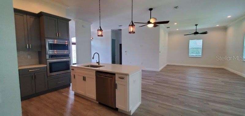 3 bedroom, 3 bath stunner has 2,214 square feet AVAILABLE 6-1 $2200 with $2000 sec dep. This home features 8ft sliding glass doors that lead out to the 18X10 lanai 10ft ceilings with crown molding. The kitchen is gourmet with wood cabinetry, soft-close drawers, double lazy susan corner cabinet, beautiful Quartz countertops, marble backsplash, and a built-in electric cooktop. Stainless appliances include wall mounted oven & microwave, double door refrigerator, and dishwasher. Waterproof luxury vinyl flooring throughout living area & bedrooms. The Master bathroom has a double sink vanity, tub/shower tiled to the ceiling, private water closet and HUGE walk-in closet. Soak in the deep, ultra-modern tub in the fabulous 2nd bath, and enjoy the elegant 3rd bathroom's stunning stall shower. Deep Creek is lovely quiet neighborhood that is in a deed restricted neighborhood in Charlotte County with its spectacular places to see the sunset views, nature filled sanctuaries, close to incredible boating, sailing and fishing, near the fabulous Downtown quaint Punta Gorda with its' variety of restaurants and shopping, several golf courses, the Pickle Plex and easy access to US-41 and I-75. It's home to many events including a Saturday Farmer's Market, wine walks, art fairs, boat tours, convenient to the Punta Gorda airport, and has 18 miles of bike and pedestrian trails connecting the city. Lawncare included, small dog friendly.
