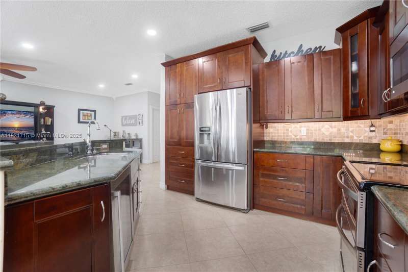 Stunning 4 BD/ 2.5 BA, live in luxury with 2880 sqft under AC. New Impact windows and doors. Outdoor Oasis, grand pergola with a custom-made bar perfect for entertainment. Magnificent high ceilings with chandeliers, gourmet kitchen with wood cabinets, SS appliances, wine fridge and open layout to a massive family room. Primary suite retreat features seating area, generous walk-in closet, dual vanities in beautifully renovated bath. Engineered wood floors upstairs, tile downstairs. Prime location! Classic Landings, a gated community with easy access to I-75, Pines Blvd, Shops of Pembroke Gardens. Great schools. Community Park, tennis, soccer, basketball, baseball! HOA includes internet, cable and 4 community pools and tot lots. Style, Space & Comfort. Second floor made of concrete