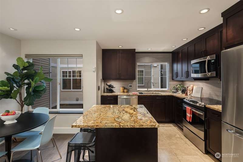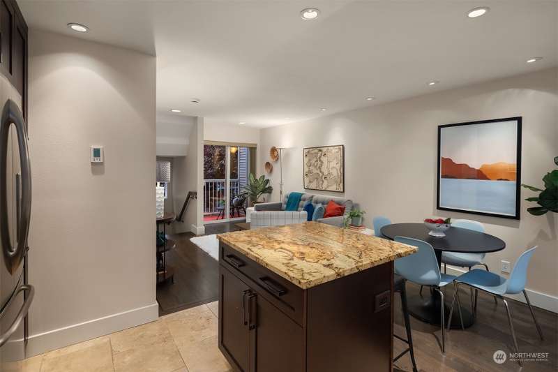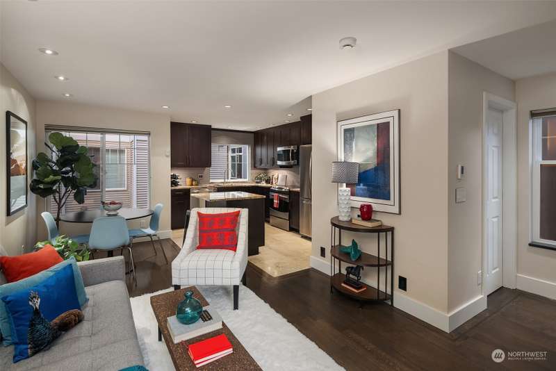 Introducing this charming end-unit townhouse ideally situated near Greenlake! Featuring 2 bedrooms, 1.25 baths, a private garage parking spot, and a quiet second level balcony. Ideal for cooking or entertaining in modern kitchen with slab granite countertops and island. Rare oak hardwood floors in living area. Nice enclosed backyard with deck for BBQs. Enjoy quick access to I-5 and Hwy 99, plus a variety of nearby coffee shops, restaurants, and PCC. Perfect for those seeking a blend of urban living in city for an incredible price. No HOA or dues. Great investment opportunity.