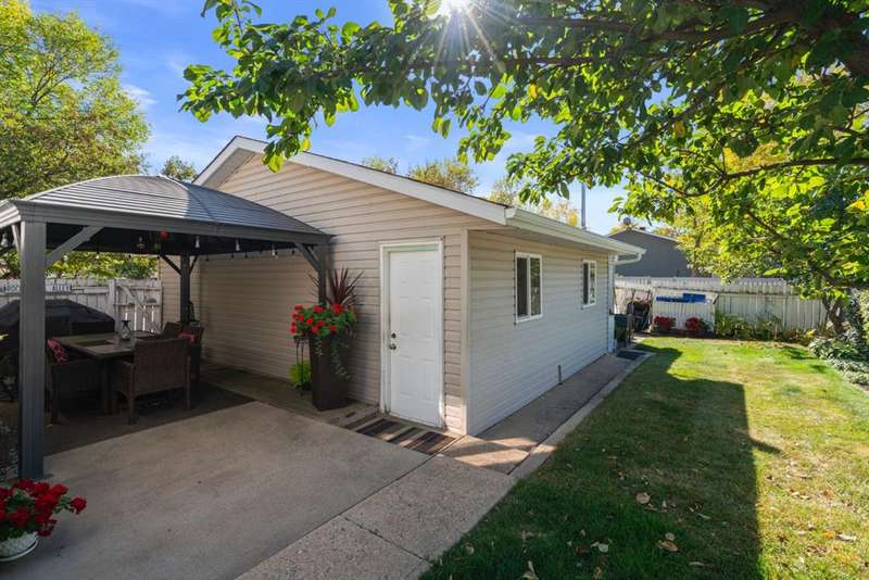Welcome to this charming bungalow nestled in a quiet neighbourhood. Thoughtfully updated inside and out, this home is completely move-in ready, offering a warm and inviting atmosphere with modern conveniences. Step inside to a bright and functional main floor with new windows and lots of space for entertaining. The main floor has 2 bedrooms with large primary and bright 4 piece bathroom with tons of storage. The lower level features a large recreation room ideal for family movie nights, games, or home gym area along with plenty of storage. There is a large bedroom with beautiful built in bookshelves. An updated 4 piece bathroom in lower makes it perfect for guests. Outside you will love the fully landscaped yard designed for relaxation. The cozy gazebo area is perfect for morning coffee or unwind at the end of the day. There is a heated double detached garage, complete with a secret room that offers endless possibilities- whether it's a private workshop, hobby space, or hidden storage. You won't wanna miss this great home!