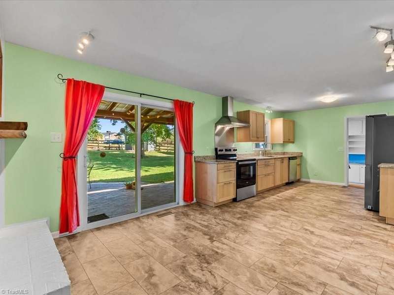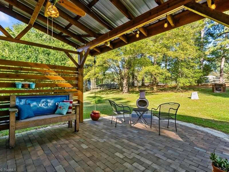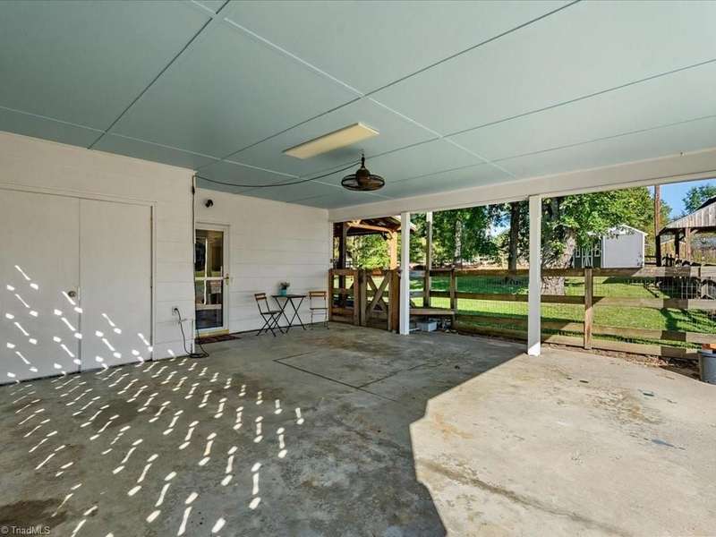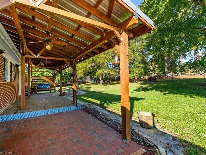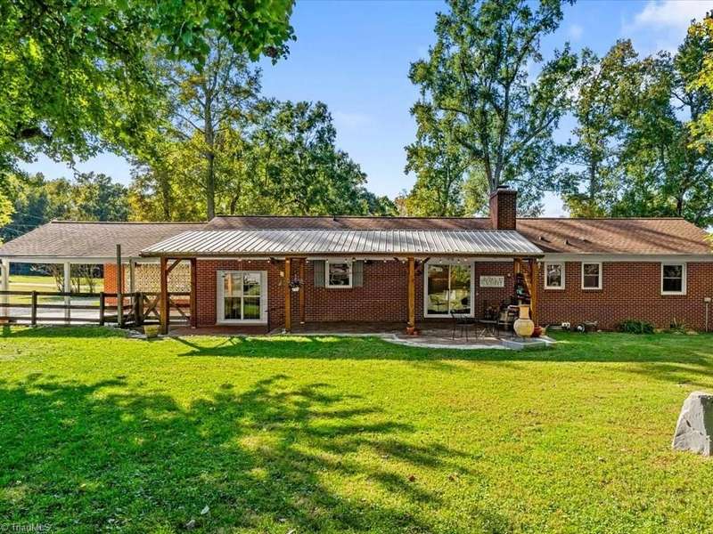 PRICE REDUCTION OF 21K. Peaceful country living while close to the NEW Toyota Battery facility with easy access to major highways and Piedmont Triad International Airport. Exceptionally well-maintained ranch in park like setting. Lovingly cared for with 3 bedrooms, 2 updated bathrooms, updated kitchen (soft close drawers), granite counter tops, keeping room with fireplace, bonus room, den. Step out to an amazing 18X39 covered brick patio, with lighting, fans and chiminea. Perfect for entertaining rain or shine. Three exterior sheds (1) 8X12 & (1)12X20, one wired and with window AC, (1) Open air shed and a Kayak rack. Carport wired for generator. 2 RV plugs on driveway. Roof 2010, HVAC 2019, Water Heater 2015, New Well 2024, Kitchen remodel 2024, patio 2017, electrical panel 2018, windows, 2015, new stove 10/25, septic pumped 6/21, freshly graveled driveway. Best of all LOW COUNTY TAXES!!!