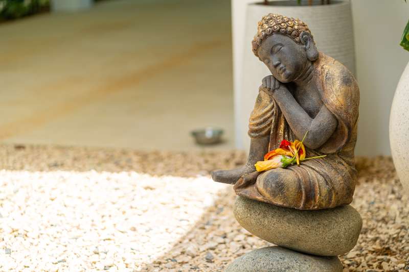 * Water dances through fountains and features, echoing the nearby waterfall and reflecting the soul.