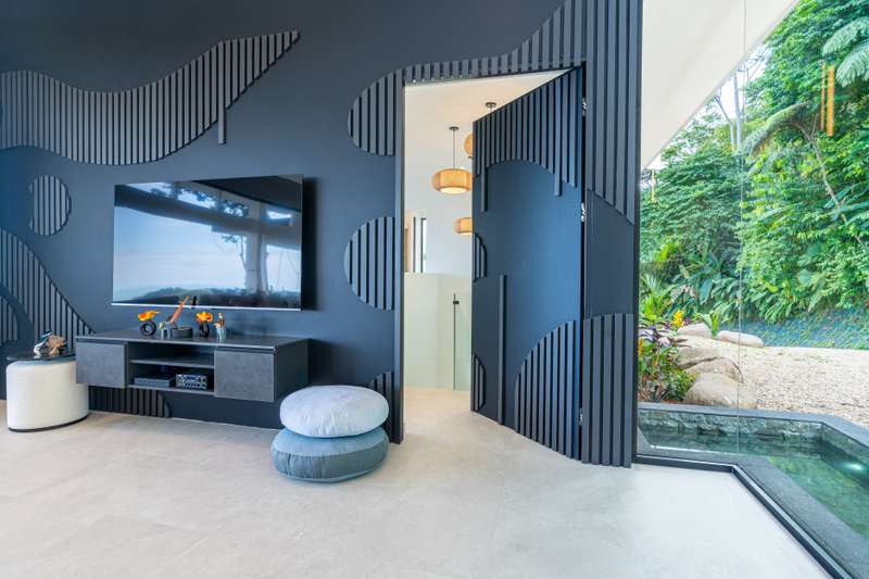 * Earth anchors the home in lush tropical gardens and ancient trees that whisper with the wind.
