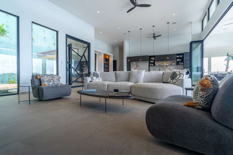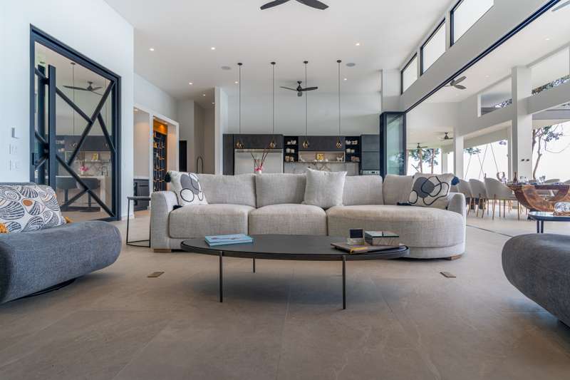 * The chef’s kitchen flows into expansive indoor-outdoor living spaces, ideal for alfresco dining or sunset cocktails.