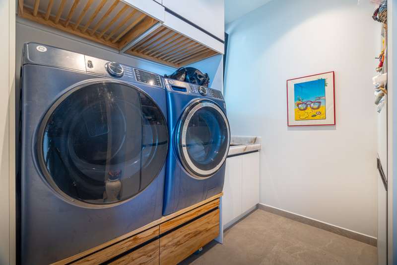 * The estate includes a fireplace, outdoor shower with dog wash, and a beautifully designed laundry zone.