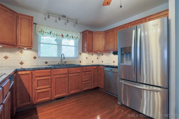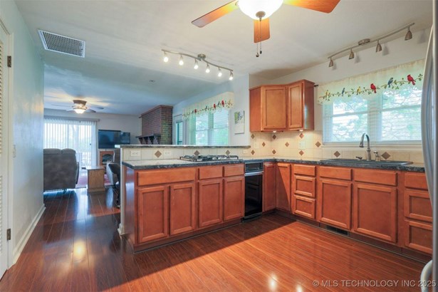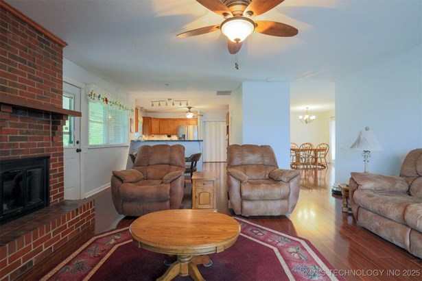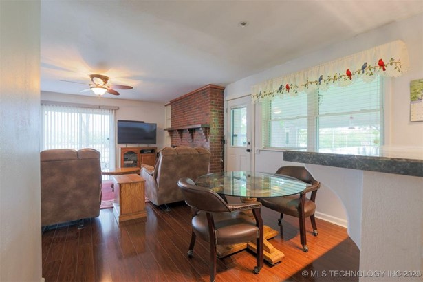 Fall in love with this stunning, 3 bedroom, 2 bathroom, updated brick home that combines modern comfort with classic charm. Featuring a beautiful kitchen and bathrooms, this home offers both a cozy den with a fireplace and elegant formal living and dining spaces. Original hardwood floors in the bedrooms add warmth and character. The backyard has a new chain link fence and also backs up directly to the city park-perfect for outdoor enjoyment. A true gem you'll be proud to call home!
