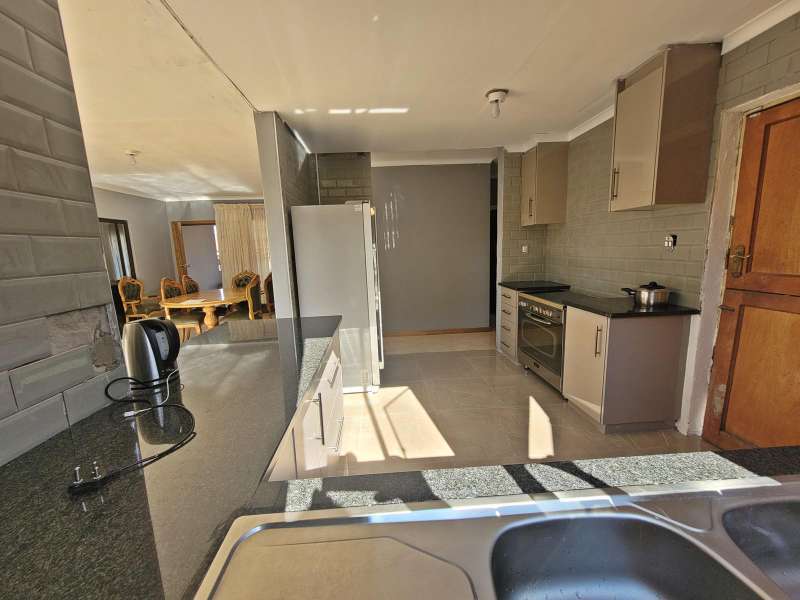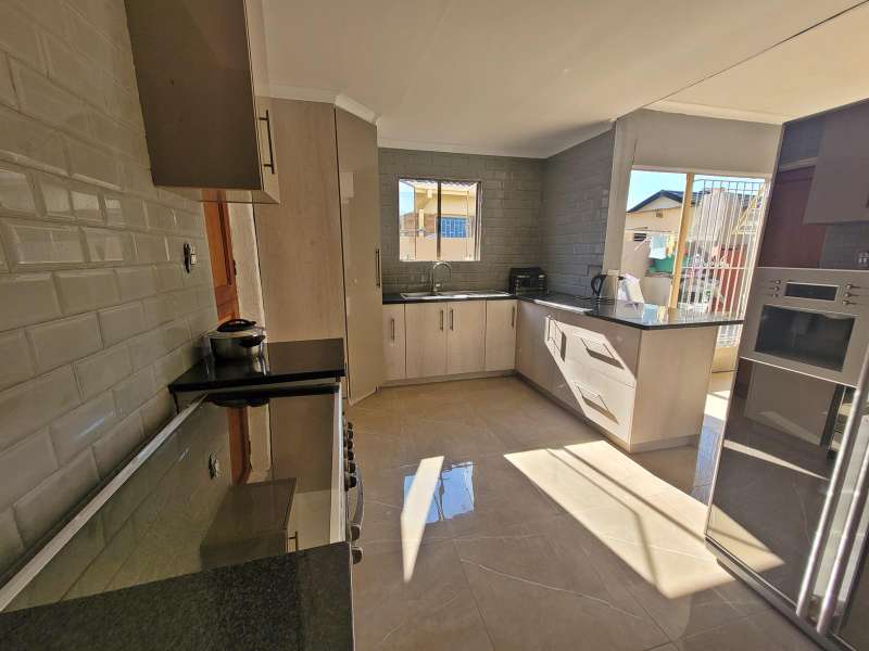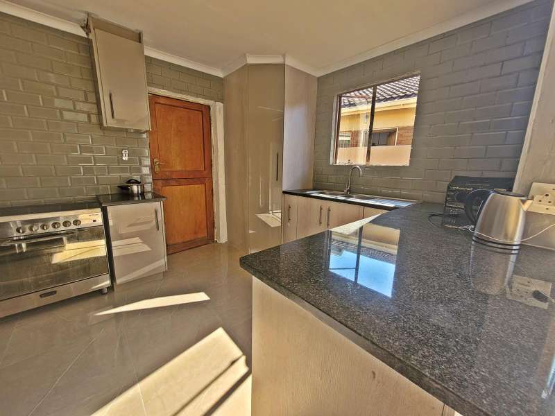 This well-structured home offers you the comfort you seek. Upon your entrance this home welcomes you with an open plan dining area with a fireplace, a spacious private lounge area for your family's entertainment. This well fitted kitchen which is renovated comes complete with built in cupboards and perfectly sized for cooking up a Sunday lunch. There are 3 bedrooms which are well sized 2 of the bedrooms comes with built in cupboards. There is a full guest bathroom and another one which is an en suite in the main bedroom. A single garage is in place which can accommodate 2 cars. Also offers: - Laundry room - Staff toilet