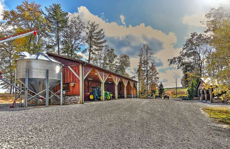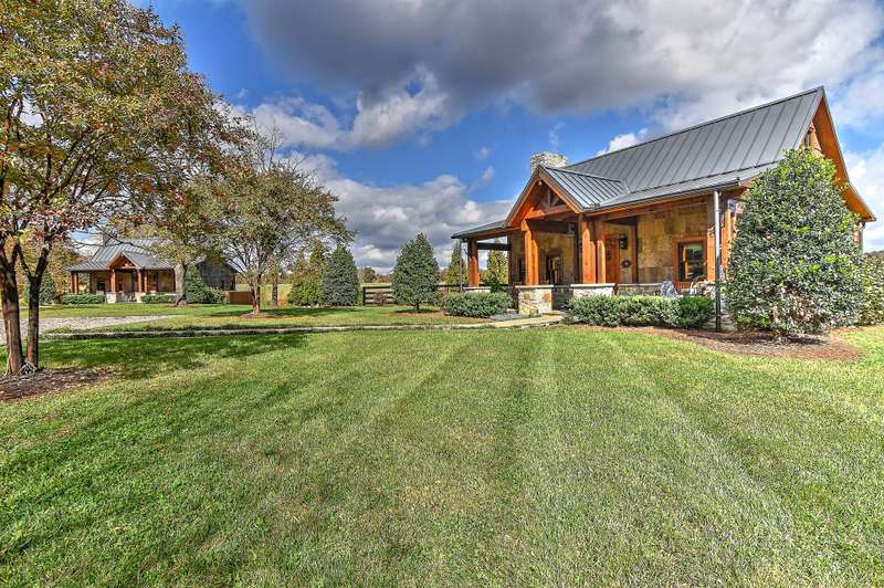 Badenyon Ranch - Perfectly planned Family Farm & Sportsman's Paradise on 758+ acres w/ eye catching gated entrance. Primarily sold w/ furnishings & farm equipment included! Property features main lodge & caretaker's quarters, 2 guest cottages, garden prep house w/ commercial freezer, cooler, ice maker. Fenced garden w/ berry & grape production, 3 farm equipment storage buildings, 15 dog kennel building, care room & 7 acre fenced dog exercise area. 3 stocked fishing ponds w/ trout & catfish, honey production, within Yadkin Valley AVA (wine growing region) & Hunt Preserve Permit. Property managed for trophy deer & early release quail for 25 years. Underground power & fiber optic internet service to lodge/cottages. Hunting Creek runs along north boundary of property w/ miles of ATV trails. Lodge & cottages feature high end finishes including stone, western red cedar & gorgeous wood bark siding. Quail Cottage features basement w/ bonus space. Property allows for endless possibilities!