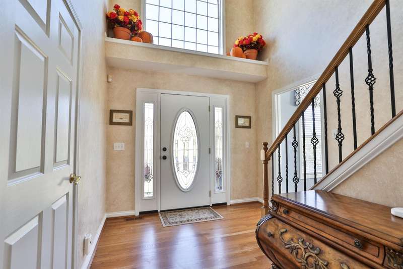 Beautifully maintained four-bedroom brick two-story on a wooded three-quarter-acre lot. Gleaming hardwood floors in kitchen, dining room, and entry. Fully equipped eat-in kitchen with double oven, granite countertops, island, under cabinet lighting, and counter bar. Family room features built-in shelving, tile gas fireplace, vaulted ceiling, and walkout to a spacious patio overlooking woods and a fountain. Formal dining room w/crown molding. First-floor laundry with lots of built-ins (washer and dryer stay. Living room/study with French Doors. Large primary suite with walk-in closet, updated bath with shower, jetted tub, and built-in ironing board. Finished lower level offers an impressive wet bar, half bath, theater room with surround sound, desk area, and study. Water softener stays. Central Vacuum System. Two-car garage with built in cabinetry, wall hanging system, and epoxy floor. New furnace 2025. Surround sound for most of the house. Immediate occupancy!