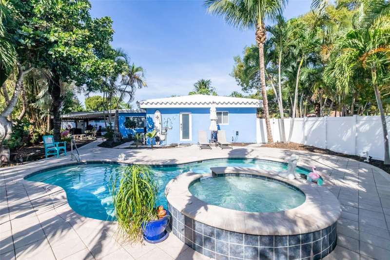 Step into this stunning 3-bedroom, 2-bath home with an open layout blending comfort and style. Located in a sought-after neighborhood, it’s perfect for families seeking the ultimate Florida lifestyle or investors pursuing lucrative short-term rental opportunities. The split floor plan offers privacy, with the primary suite separated from the secondary bedrooms—ideal for hosting guests. The backyard is a true paradise, featuring a sparkling pool, waterfall jacuzzi, and spacious covered patio, perfect for BBQs or alfresco dining. Situated on an oversized corner lot, the home boasts ample outdoor space, a circular driveway, and easy access to Fort Lauderdale Beach (10 min) and Wilton Manors (2-5 min) with shopping, dining, and nightlife.