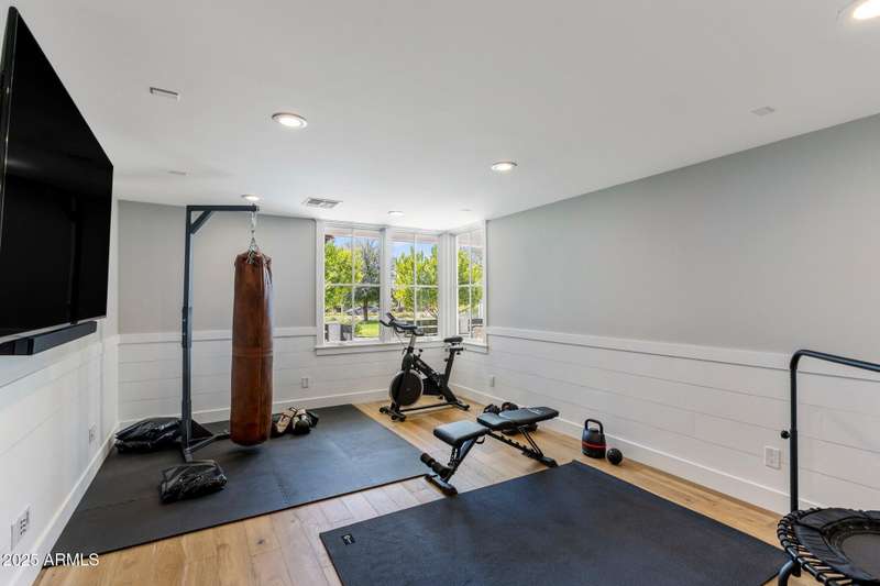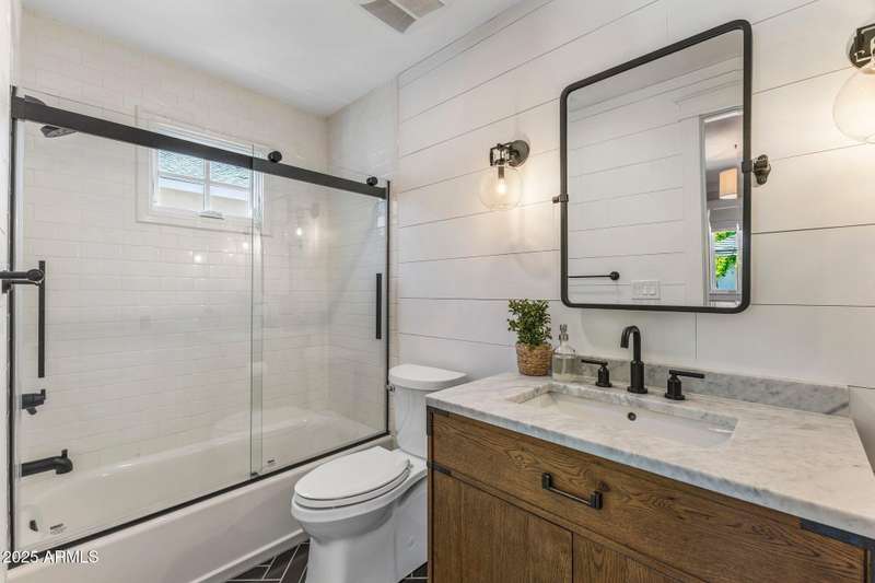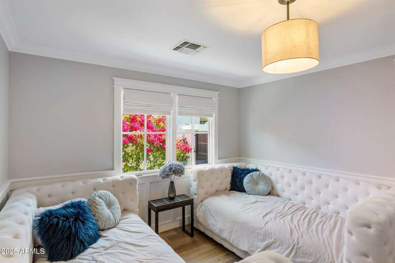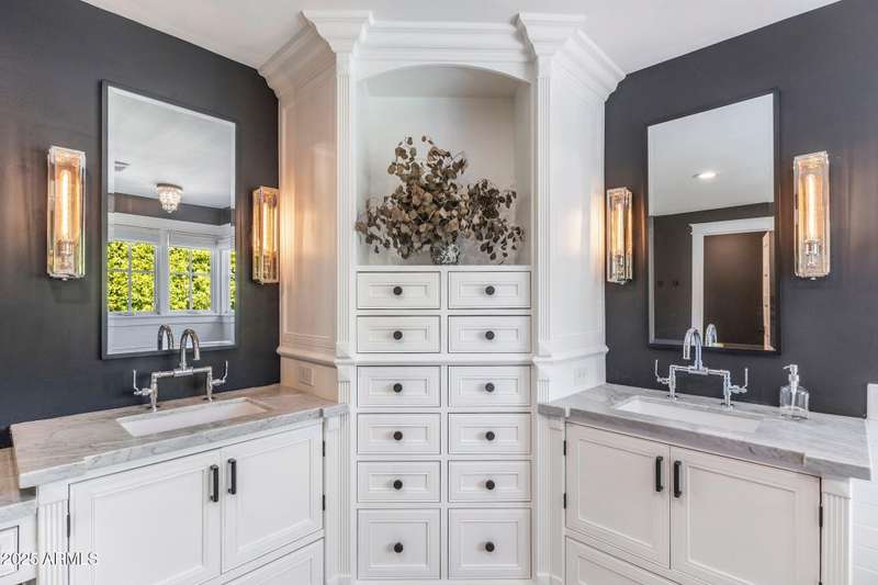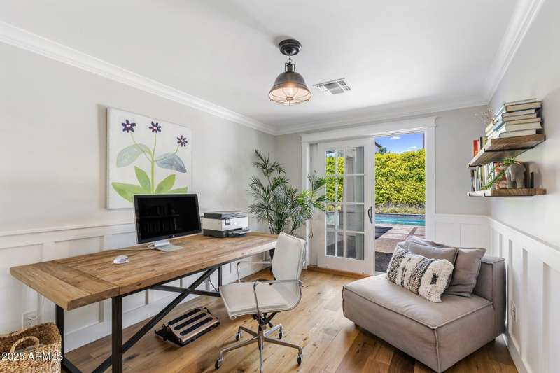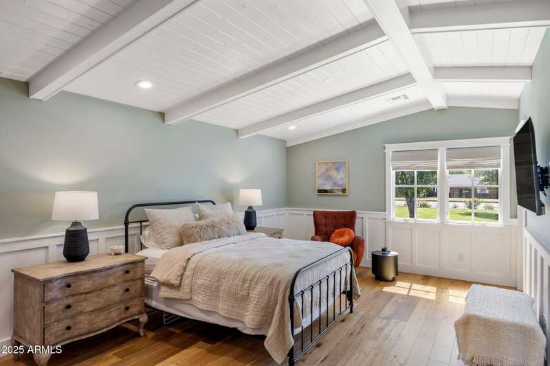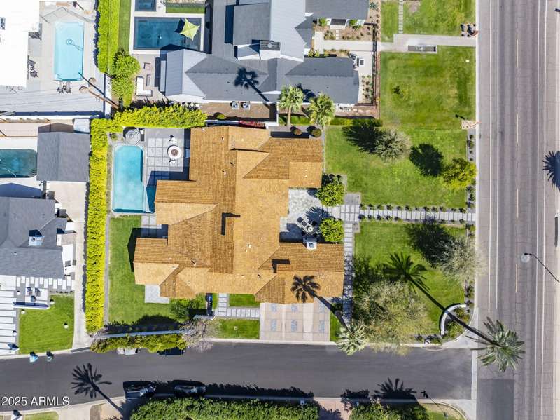 Within view of Camelback Mountain in the highly coveted Arcadia Proper neighborhood, this extensively updated home masterfully combines timeless luxury with modern farmhouse design. Set on an expansive 19,000+ sq ft lot, the property is surrounded by lush, manicured landscaping, including mature citrus trees and blooming white roses, creating a private and picturesque retreat. A front courtyard, complete with seating area and wood burning fireplace, creates a welcoming entrance to the home. Inside, rich oak wood floors, custom millwork, and high-end finishes enhance the warm, sophisticated atmosphere throughout home which features 5-bedrooms, 4.5-bathrooms, an office and a bonus room. More.. One of the front bedrooms features its own private entrance and ensuite bath, ideal for a mother-in-law suite or independent teen space. At the heart of the home is a stunning chef's kitchen, thoughtfully designed with two farmhouse sinks, dual dishwashers, high-end appliances, and generous counter space. Beautiful windows flood the space with natural light, creating an inviting environment for cooking, gathering, and entertaining. The main living area opens seamlessly to the outdoors with 15-foot sliding doors that lead to a spacious covered patio overlooking a sparkling heated pool and gas fire pitperfect for year-round entertaining and relaxation. A 3-car garage completes this exceptional property, offering both functionality and style in one of Arcadia's most desirable locations.