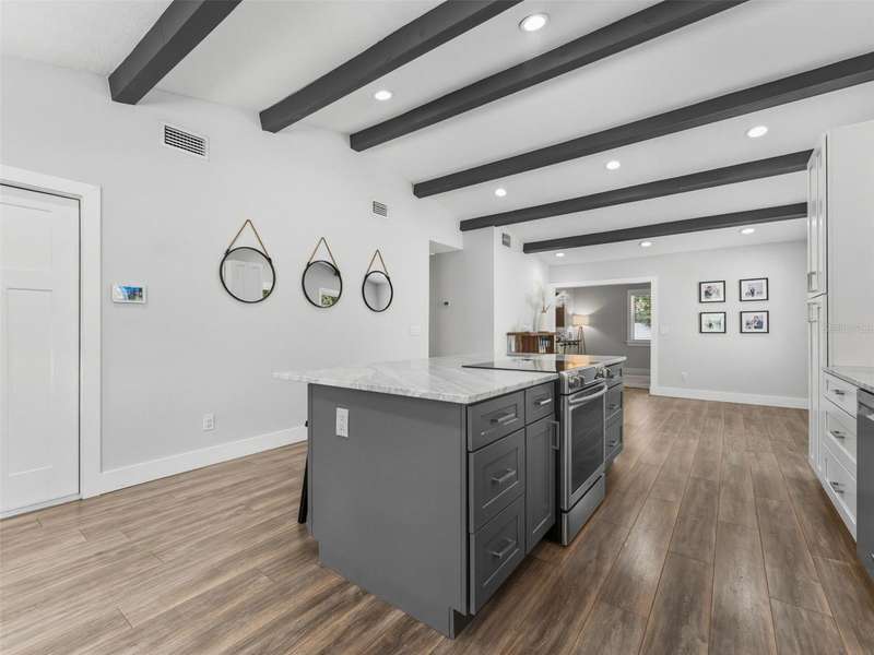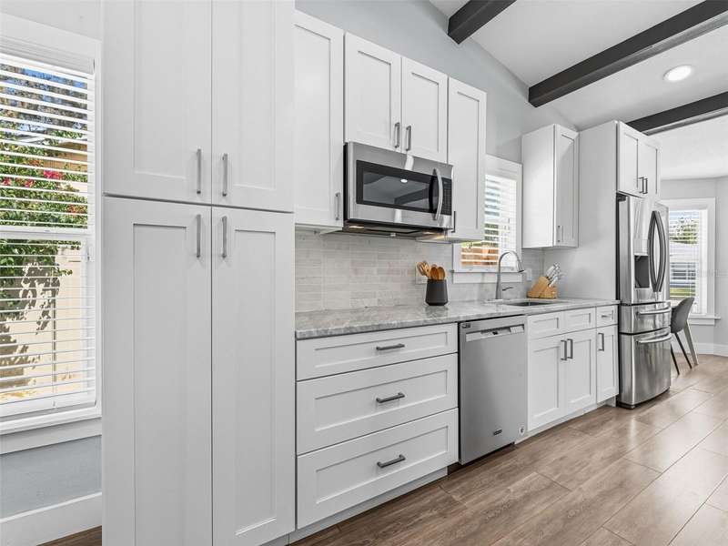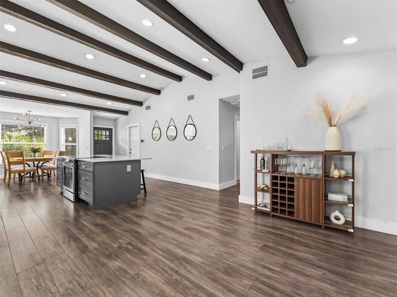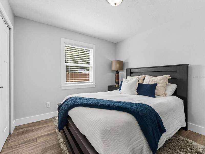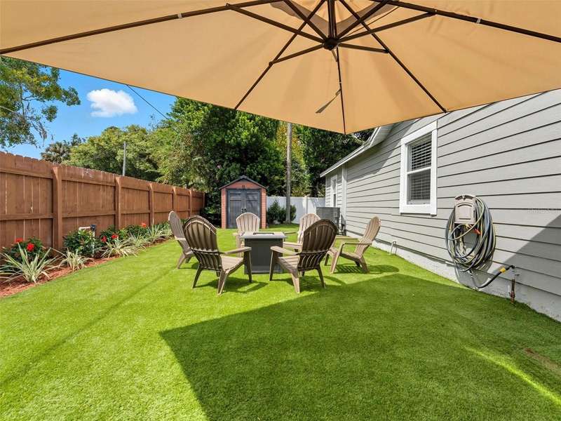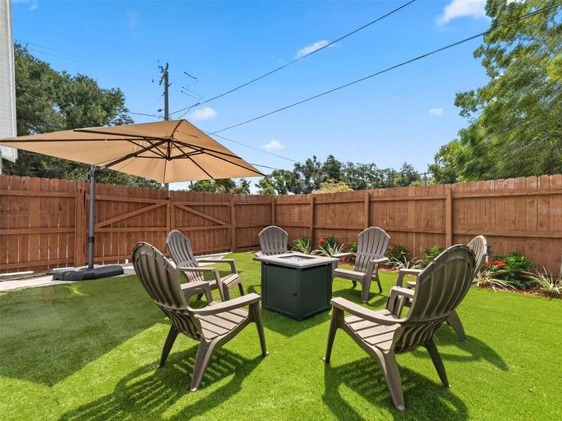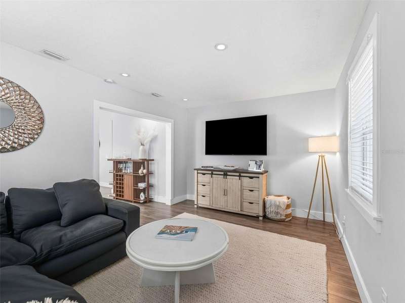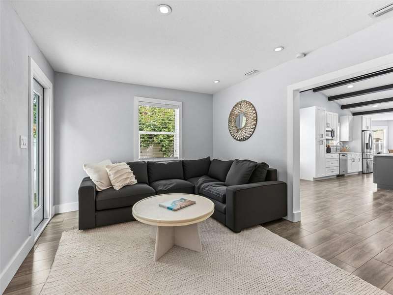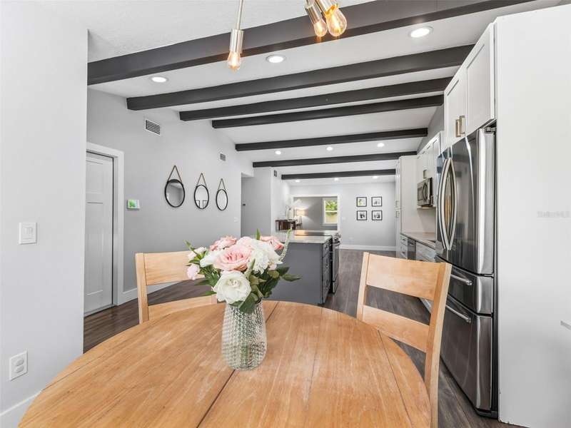 Under contract-accepting backup offers. One or more photo(s) has been virtually staged. Welcome to this beautifully updated and move-in-ready home, nestled on a spacious corner lot in the highly sought-after Old Seminole Heights neighborhood. Offering the perfect blend of modern style and comfort, this home is located just minutes from top dining, local favorites, shopping, and entertainment options, including Armature Works, Midtown, Hyde Park, and Downtown Tampa. Step inside to an open and airy layout, where vaulted ceilings and contemporary wooden beams create a warm and inviting atmosphere. The abundance of natural light pours in from the bay windows, highlighting the luxury finishes throughout. The chef-inspired kitchen boasts an oversized kitchen island and stone backsplash, stainless steel appliances, shaker cabinets, and ample seating at the breakfast nook, kitchen island, or dining room. Perfect for entertaining or enjoying a quiet night in. The sprawling primary suite is a true retreat, offering a cozy sitting area, a custom walk-in closet, and a luxurious en suite bathroom with a spa-like double rainfall shower—your own private oasis. Two additional generously sized bedrooms share a beautifully remodeled full bath, providing ample space for family or guests. The outdoor space is just as impressive, featuring a fully fenced backyard with lush landscaping and a new artificial turf lawn. Multi-zone irrigation with an electronic module ensures your yard stays vibrant year-round. Enjoy sunny days or evenings grilling and lounging on the deck, or take advantage of the additional green space for outdoor activities. Parking is a breeze with a rare 1-car garage and two driveways, providing plenty of room for guests or additional vehicles. Don't miss the chance to own this stunning home in a prime location with everything you need right at your doorstep. Schedule your showing today!