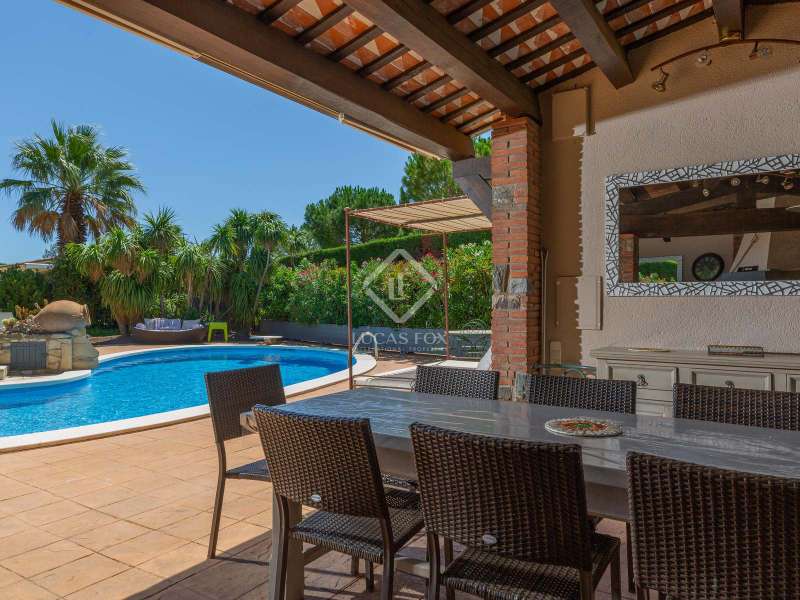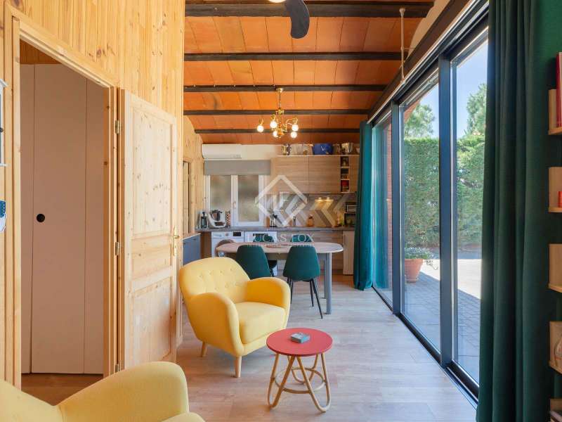 Built in 1999 and maintained in immaculate condition since, this prestigious property sits on a flat plot of 2,051 m² and is only a short walk from the Golf Peralada clubhouse and hotel. The property is composed of the main house, an independent annex and a pool house. The main house was constructed using the highest quality materials and finishes, with wooden beams, stonework and stained-glass windows. Of particular note is the impressive double-height living room, overlooked by an upper gallery. The main centrepiece of the living room is the stone fireplace around which the seating is arranged. Leading off the living room, we find the dining area with sliding doors which open out onto a terrace that runs around the exterior of the house and overlooks the pretty garden. This terrace has been closed to allow for winter use. Leading off the dining area, we find the fully fitted kitchen. The sleeping accommodation is also found on the ground floor with four large double bedrooms, each with its own en-suite bathroom, fitted wardrobes and air-conditioning. Moving up to first floor, we find the open-plan gallery overlooking the living room, which is currently used as a games room. There is a large terrace overlooking the garden leading off the gallery. Outside the property we find the outstanding heated swimming pool area complete with jacuzzi. Here we find everything needed for outdoor poolside entertaining with a chill-out area, a dining area, a bathroom, an outdoor kitchen and bar. Shielded from the main house and pool area, and accessed via a separate vehicle access, we find the annex. The modular annex is currently designed to comprise a living room, small kitchen, bedroom and bathroom, although the interior distribution can be easily modified to the owner’s wishes. Next to the annex, we find a covered parking area for two cars and a separate storage shed. The property represents an excellent opportunity for those who wish to rent out the main house whilst living in the annex, since the property benefits from a tourist licence.
