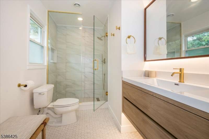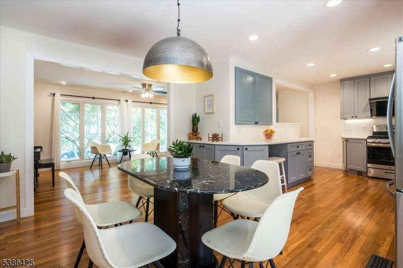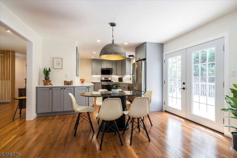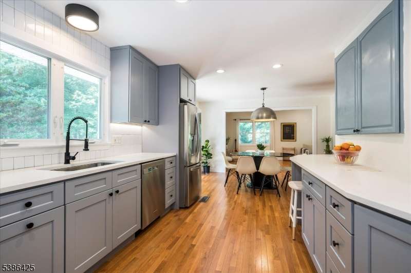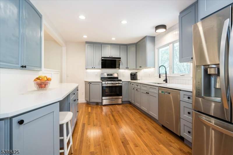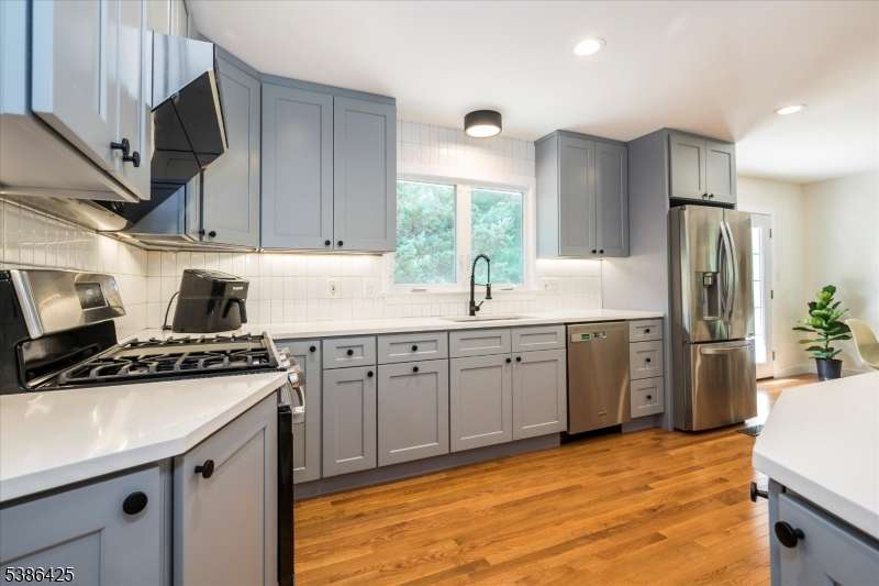 Situated on a quiet cul de sac, this newly updated three bedroom, three full bath home offers a flexible, sun-filled floor plan with a stylish kitchen and modern baths, making it truly move-in ready. The entryway features custom wood built-ins and steps up to a spacious living room, where oversized picture windows bring in an abundance of natural light. Renovated in 2025, the open concept kitchen is designed with beautiful cabinetry, rich wood flooring, stainless steel appliances and a dining area with french doors opening to the deck. The adjacent great room's high ceilings and expansive windows make it ideal for entertaining and everyday living. Located on the main level, the primary bedroom includes a new en-suite bath with a roomy walk in shower. Two additional bedrooms share another updated bath in the hall. Additional amenities such as closets with built-in shelving systems, new solid wood doors and upgraded hardware throughout are highlights. A fully finished, walkout lower level contains areas for a home office, recreation space or gym. Also on this level are a full bath, laundry and convenient access to a tandem garage, while floor-to-ceiling windows and sliding doors to the yard encourage indoor/outdoor living. The private yard provides an entertainment-sized deck, paver patio, walkways and mature landscaping. This upgraded home's central location is close to downtown Berkeley Heights for trains, transit options, shops, restaurants and local recreation.