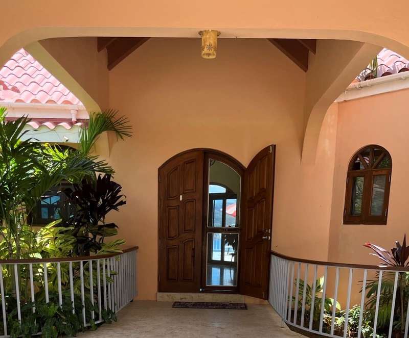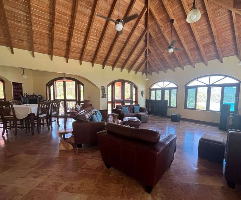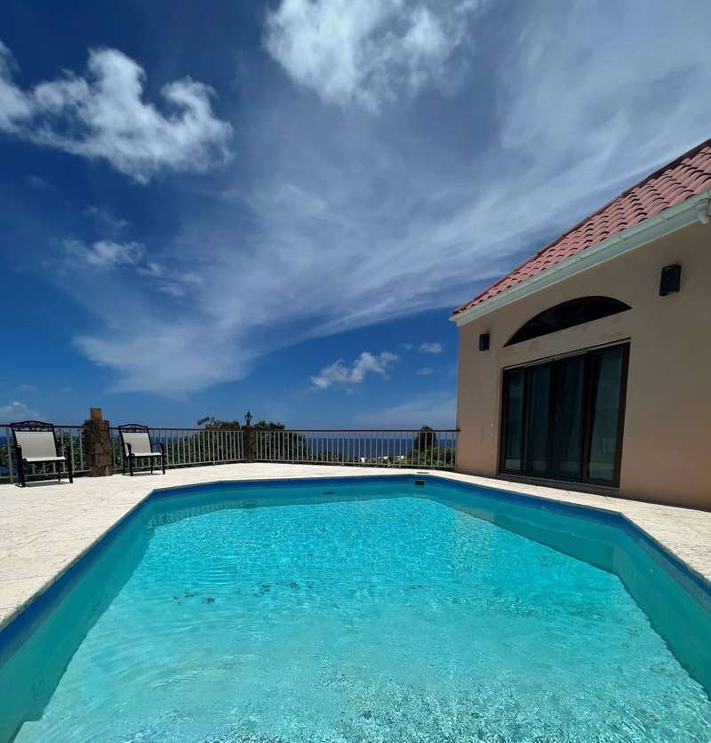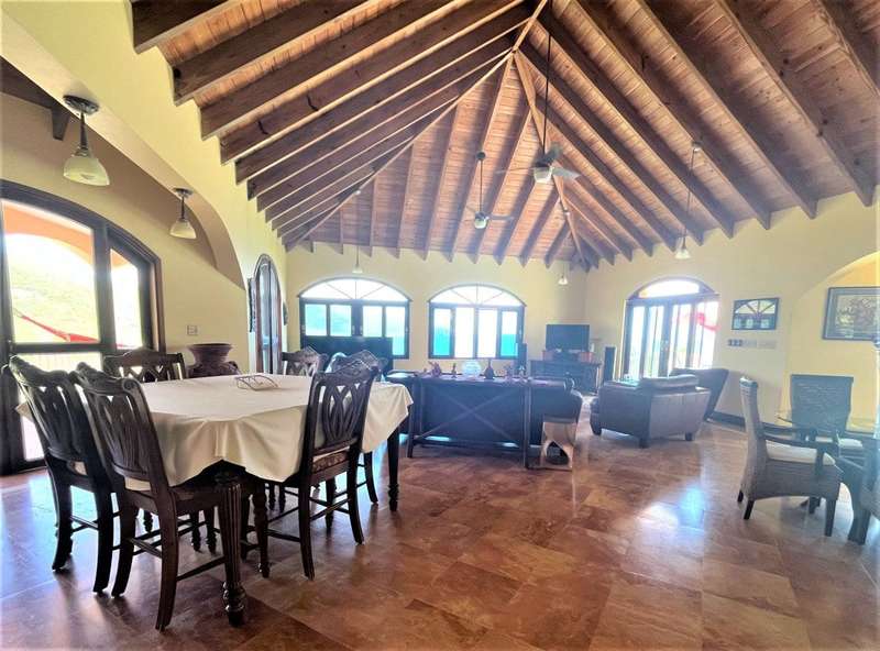 Expansive fully air-conditioned custom villa set on 0.965 acres overlooking Little Bay and within walking distance to this beautiful white sand beach. The long driveway stretches through lush tropical gardens and leads to the rear courtyard and garage. The Great Room, with fully equipped kitchen, dining and sitting areas is of magnificent proportions, with high ceilings and French doors on all sides leading to an open swimming pool terrace, as well as a covered dining terrace. The generous master bedroom suite and a guest suite are located down a corridor leading off the foyer which also provides direct access to the pool terrace and a powder room. A third bedroom suite is adjacent to the kitchen and has access to a private balcony. The property also offers additional accommodation on the lower level with a spacious self-contained studio apartment and an independent one bedroom apartment which makes the villa with its 5 bedrooms and 5.5 bathrooms ideal for a large family, frequent visitors or as an income producing property.