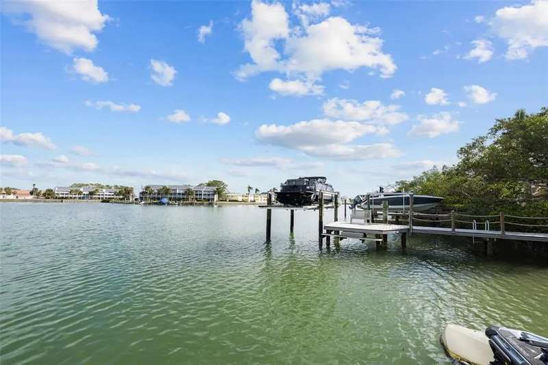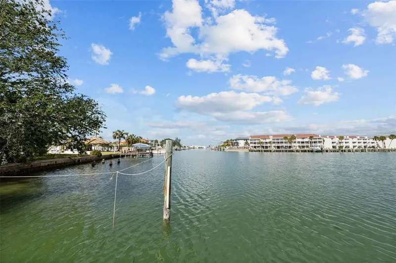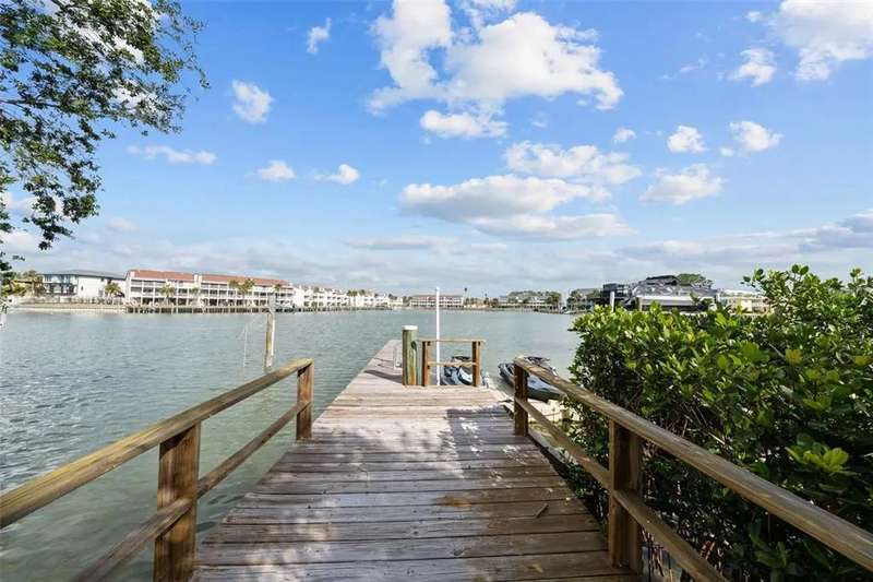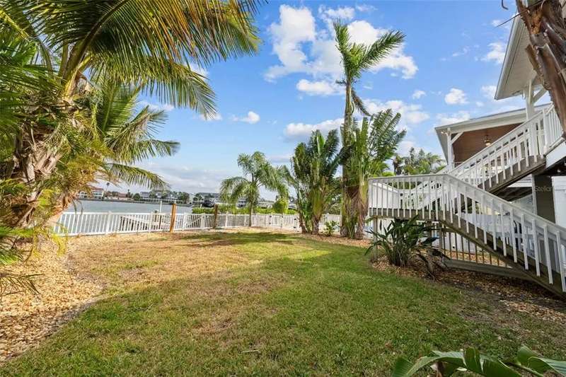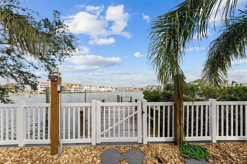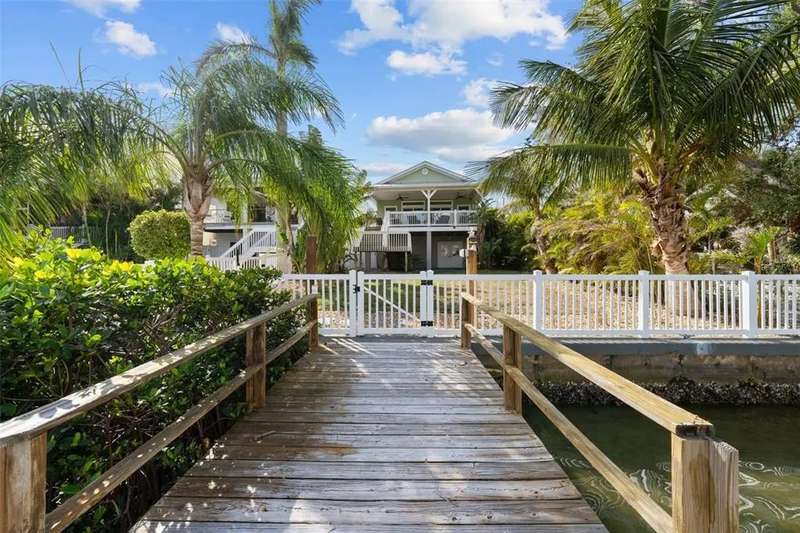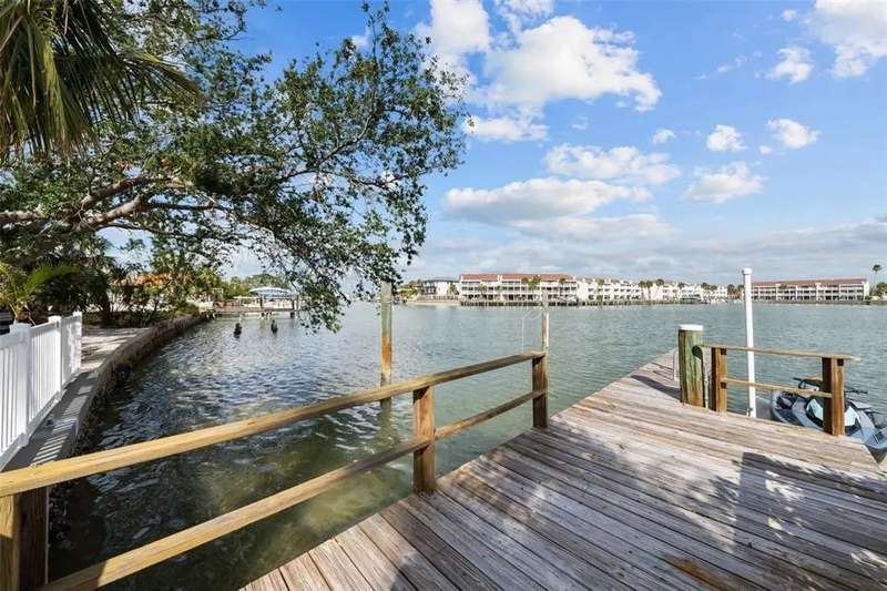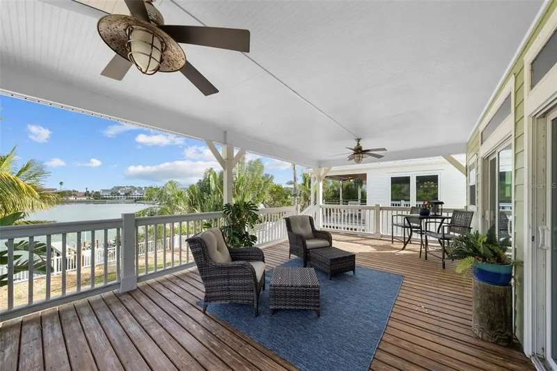 This Coastal Home is a boater's dream in a protected Lagoon on the Intracoastal Waterway with direct access to the Gulf of Mexico. The Key West Style home is wrapped in porches, capturing salty breezes for an endless vacation vibe. This waterfront beach house is found on a corner lot with both sunrise and sunset views. An open floor plan includes a living room with built in shelving for media, entertainment and personal treasures. The dining area provides a large gathering space while the kitchen has a center island with breakfast bar, open shelving for glassware, a wine nook, and a large pantry for storing dry goods and small appliances. Sand colored granite countertops float above white shaker cabinets with abundant prep and storage space. Take indoor living outside through sliding doors to the covered waterfront living area. All on one living level, the Primary Suite has French doors to the westward porches to delight in sunset skies and nightcaps. The ensuite bath has been updated with large vanity and a gorgeous, tiled steam shower. No need to share a closet, you can each have your very own! The second bedroom also has French doors to the sunset porch to let in the natural light. The third bedroom offers flexibility for residents, guests or a home office. This Custom home has gorgeous eucalyptus flooring and 9’ ceilings throughout, 6” crown moldings, thoughtful built-in features, designer hardware and fixtures – this is a truly special home. While the living area has ample storage space, there is also a large garage with room for several vehicles, golf carts, bicycles, beach toys and fitness area. Take your kayaks and paddleboards right out the back door. The waterfront has a deep-water dock with power, water and even an outdoor shower. Sailboat water, in a no wake zone, has direct access to the Gulf of Mexico via John’s Pass. The back yard oasis has a covered lanai for BBQ and al fresco dining or chilling out in the shade. Tropical palms surround the space for privacy, leaving room for a pool. Beach access is just two blocks away with a crosswalk at Gulf Boulevard and 123rd Avenue. Custom built in 2016 at 14’ above sea level, this home is a fortress, exceeding FEMA requirements with impact glass windows and doors, metal roof, and reinforced engineering. This home is offered fully furnished, Move-in Ready with Motivated Sellers!