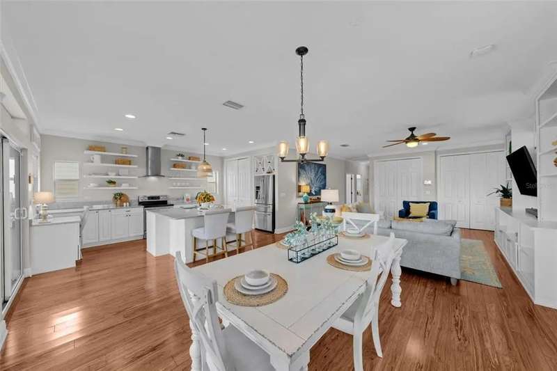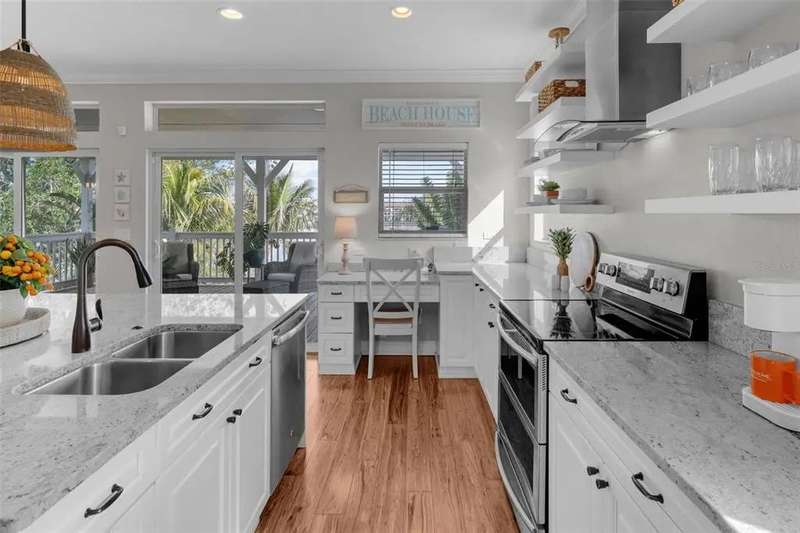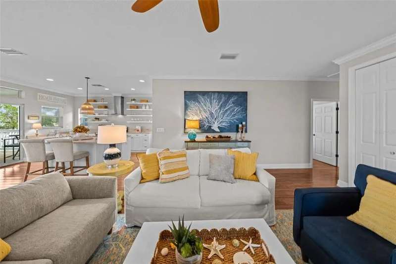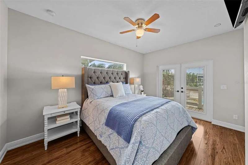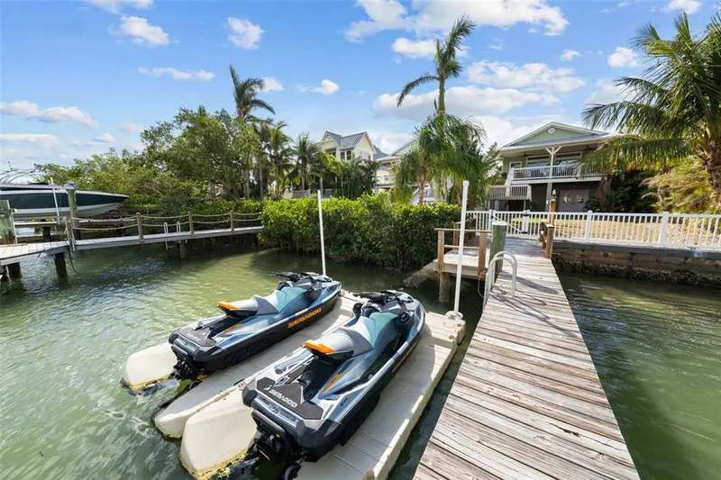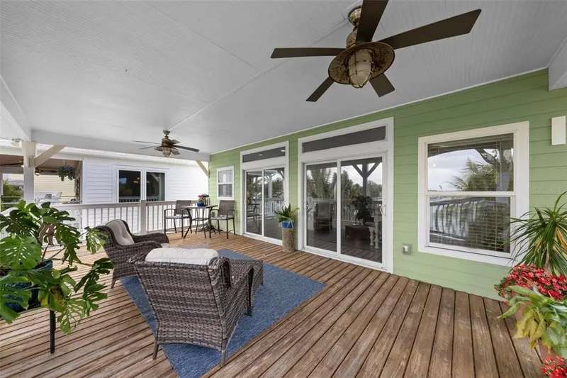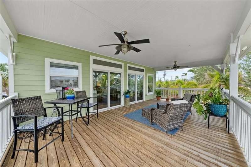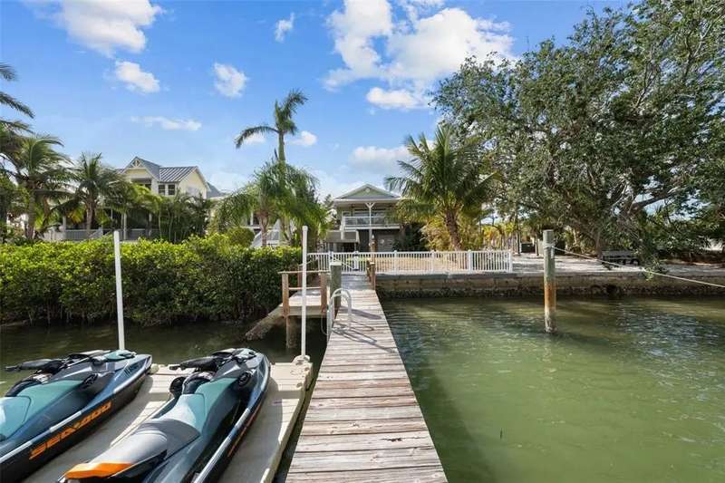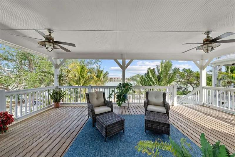This Coastal Home is a boater's dream in a protected Lagoon on the Intracoastal Waterway with direct access to the Gulf of Mexico. The Key West Style home is wrapped in porches, capturing salty breezes for an endless vacation vibe. This waterfront beach house is found on a corner lot with both sunrise and sunset views. An open floor plan includes a living room with built in shelving for media, entertainment and personal treasures. The dining area provides a large gathering space while the kitchen has a center island with breakfast bar, open shelving for glassware, a wine nook, and a large pantry for storing dry goods and small appliances. Sand colored granite countertops float above white shaker cabinets with abundant prep and storage space. Take indoor living outside through sliding doors to the covered waterfront living area. All on one living level, the Primary Suite has French doors to the westward porches to delight in sunset skies and nightcaps. The ensuite bath has been updated with large vanity and a gorgeous, tiled steam shower. No need to share a closet, you can each have your very own! The second bedroom also has French doors to the sunset porch to let in the natural light. The third bedroom offers flexibility for residents, guests or a home office. This Custom home has gorgeous eucalyptus flooring and 9’ ceilings throughout, 6” crown moldings, thoughtful built-in features, designer hardware and fixtures – this is a truly special home. While the living area has ample storage space, there is also a large garage with room for several vehicles, golf carts, bicycles, beach toys and fitness area. Take your kayaks and paddleboards right out the back door. The waterfront has a deep-water dock with power, water and even an outdoor shower. Sailboat water, in a no wake zone, has direct access to the Gulf of Mexico via John’s Pass. The back yard oasis has a covered lanai for BBQ and al fresco dining or chilling out in the shade. Tropical palms surround the space for privacy, leaving room for a pool. Beach access is just two blocks away with a crosswalk at Gulf Boulevard and 123rd Avenue. Custom built in 2016 at 14’ above sea level, this home is a fortress, exceeding FEMA requirements with impact glass windows and doors, metal roof, and reinforced engineering. This home is offered fully furnished, Move-in Ready with Motivated Sellers!