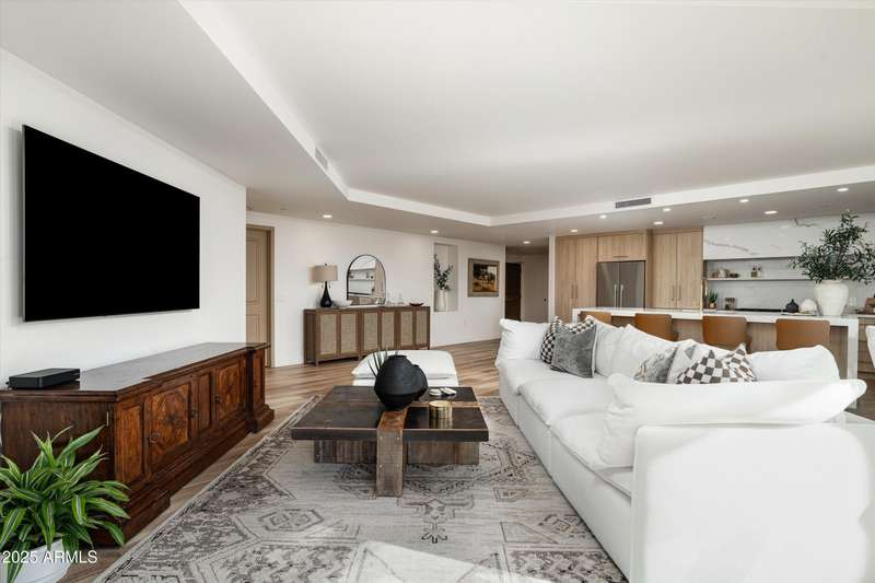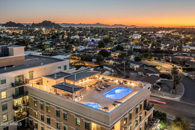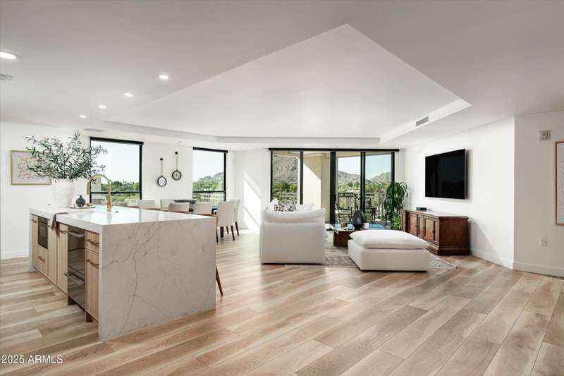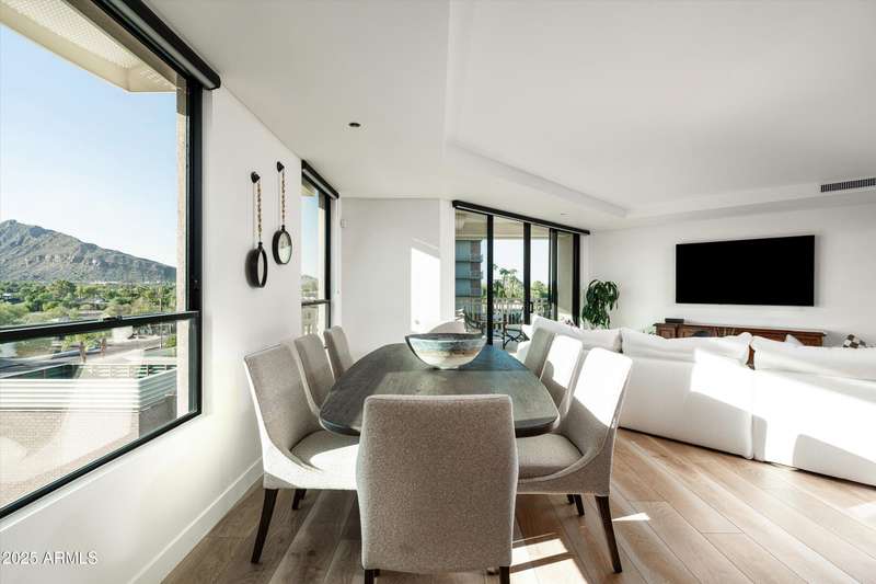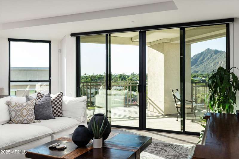 Welcome to The Mark, the ultimate blend of luxury, convenience & style in the heart of Old Town. This 5th floor rare 3-bed, 3.5 bath corner residence has been fully remodeled with no detail overlooked, this carefully curated transformation includes only the finest finishes. Walls of glass open to a dramatic oversized terrace, showcasing sexy Camelback Mountain views by day and glittering city lights at night, a stunning backdrop for both entertaining and quiet evenings. Inside, the home exudes sophistication with a chef's kitchen featuring custom cabinetry, dual Asko dishwashers, and a full pantry. Each bedroom is en-suite, and the primary retreat is enhanced by dual custom closets, including a hidden walk-in and wood built-ins. Life at The Mark feels like big city living with the best of Scottsdale. Amenities include a newly remodeled rooftop pool, spa, and ramada with panoramic views, a state-of-the-art workout room, sleek conference space, and lobby coffee bar, all supported by doorman concierge service. Residents also enjoy exclusive perks at the iconic Hotel Valley Ho, from discounts to in-room dining.