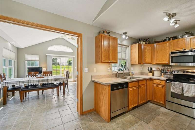 Enjoy the open space 3.86m acres of park( you don't have to mow) from the comfort of your deck. Four Season Room with in floor heat, new AC and heating unit, Deck, Patio and Fenced Yard, Great Room with vaulted ceiling and gas fireplace, Master with private Bath, First Floor Laundry plus lower level laundry room, Lower Level you will find Rec Room, 3rd Bedroom, 3rd Bath, 2nd Laundry room or office or craft room, Storage room with cabinets, counter and sink, heat pump with backup furnace, home wired for speaker system, perfect life style choice!