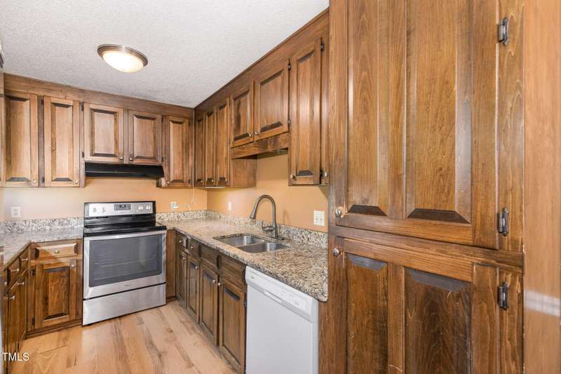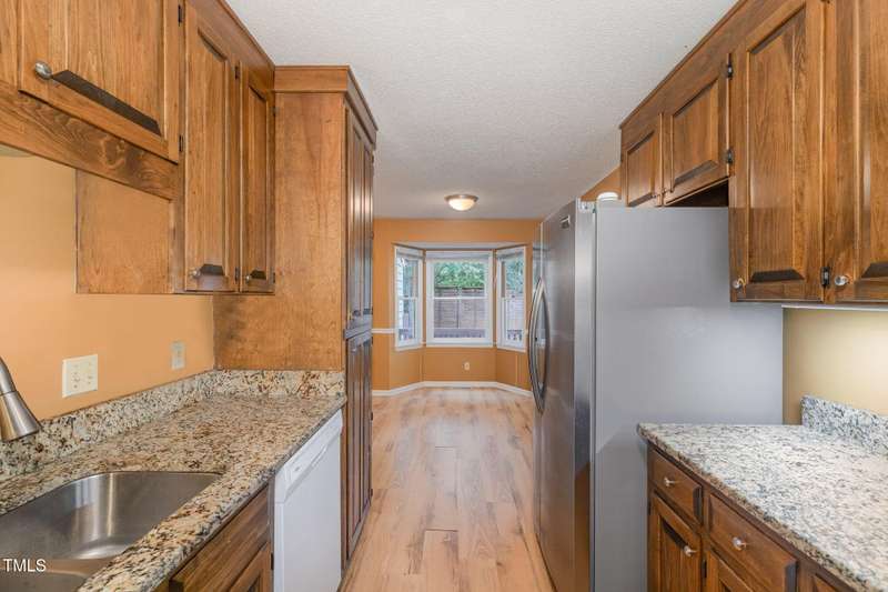 Great location near NC State, I-40 & Downtown Cary. Hard to find 1st level bedroom and full bath. Family room with fireplace. Kitchen has 42'' cabinets, granite tops, eat-in kitchen with bay window. Large master bedroom with gigantic bathroom with double vanity, garden tub, separate shower, vaulted ceilings. 3rd bedroom upstairs. Deck backs to spacious backyard, storage room.