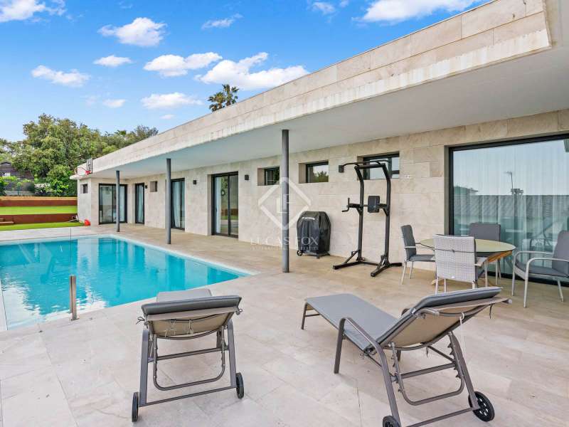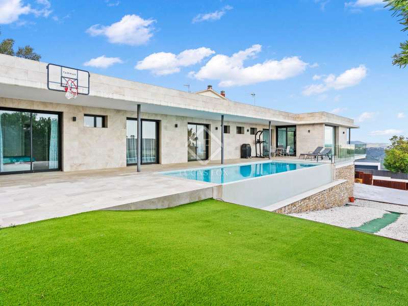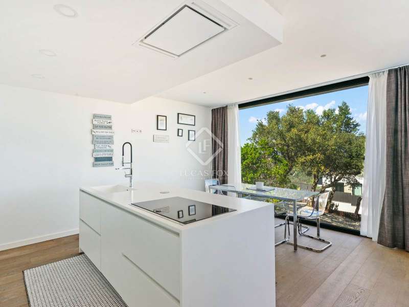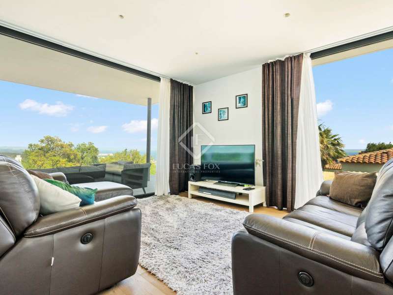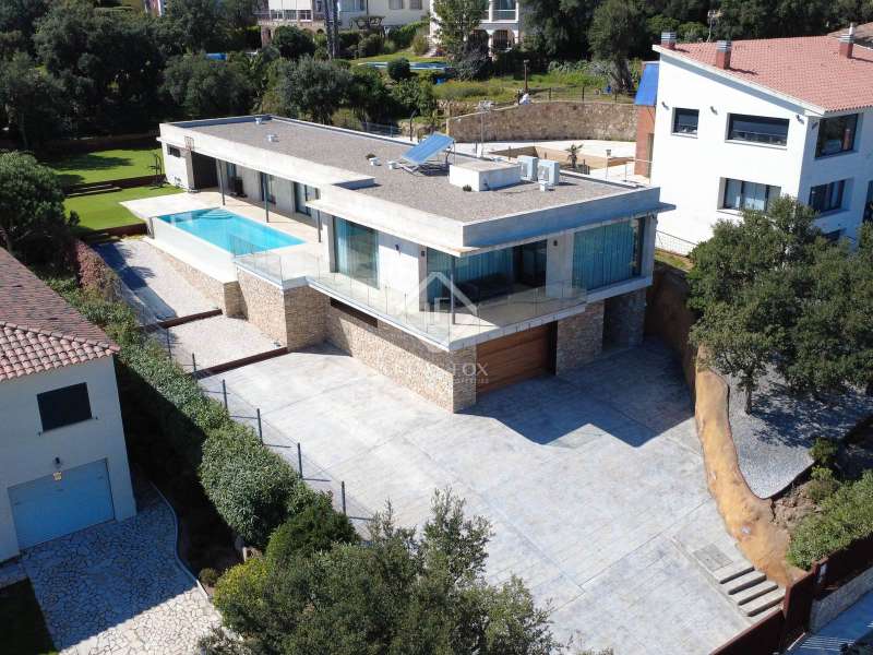 Lucas Fox presents this spectacular modern design villa , built in 2016, with beautiful sea and mountain views. This fantastic home is located in the prestigious and peaceful Cim d'Aro development , just 3 kilometers from the centre of Platja d'Aro and its beautiful beaches and coves. The villa is spread over two floors. The ground floor features an elegant and spacious entrance hall, a large garage with space for several vehicles, a utility room, a utility room , and an elevator. On the first floor is the day area , or main floor , which features a modern kitchen with an island, a living room, and a dining room. It has access to the terrace with sea and mountain views, as well as access to the pool area. There is also a guest toilet and access to the elevator. On the same floor, there is the night area with two double bedrooms, a full bathroom , a ensuite bedroom , and the main bedroom with a private bathroom and dressing room. The villa has a magnificent flat garden surrounding the house, as well as a large exterior parking space at the entrance of the property. This house features underfloor heating and air conditioning villa. The pool area receives sun all day long. This is a practical and well-designed home, perfect for full-time living or as a second home. This property is located in Platja d'Aro, in the heart of the Costa Brava, one of the most popular tourist resorts in the Mediterranean.