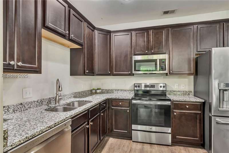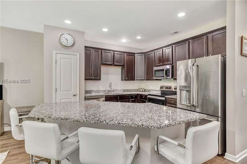 Welcome to this 3-bedroom, 2.5-bath townhome located in the desirable Midpoint at New Riverside community. This home features a spacious kitchen with a large island, granite countertops, and ample cabinet space, perfect for everyday living and entertaining. LVP flooring runs throughout the main living areas. Enjoy a beautiful wooded view from the back patio, offering privacy and a tranquil setting. Conveniently located near the New Riverside Barn Park, and a variety of dining options and shops.