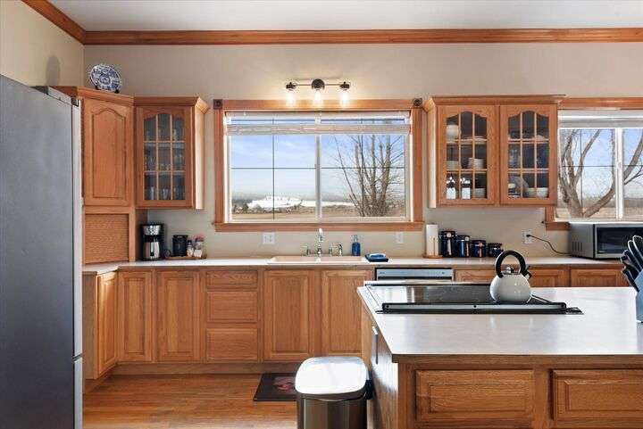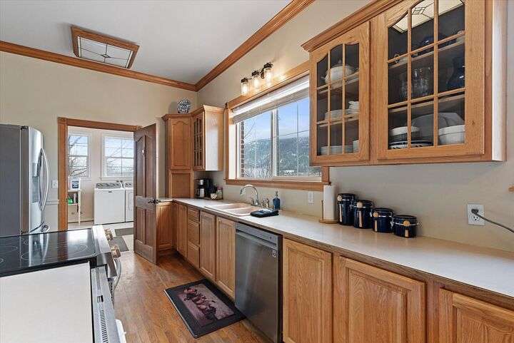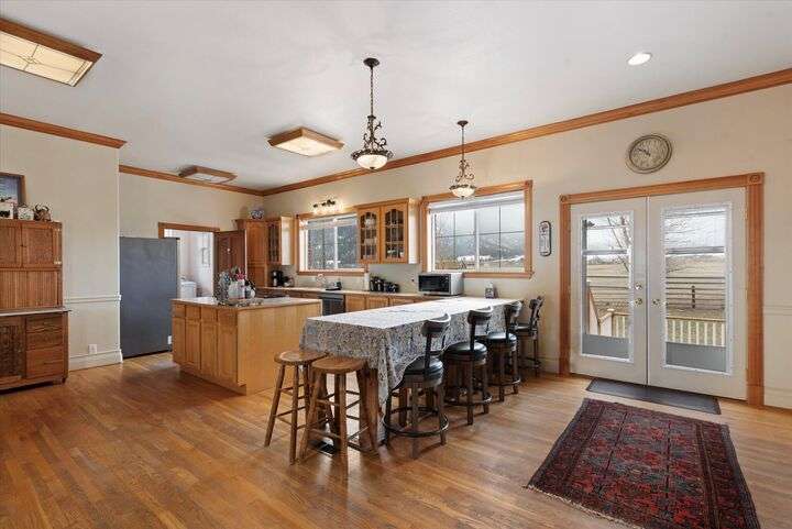 Nestled in the heart of Baker City's rich history & at the base of the Elkhorn Mountains, this remarkable property offers a rare chance to own a piece of the past. Originally the Rock Creek schoolhouse, the building was tragically destroyed by fire but was lovingly rebuilt, preserving its historic charm. The home sits on 5+ acres, featuring custom woodwork & a fireplace crafted from the bricks salvaged from the original schoolhouse, making it a true historical treasure. Enjoy towering views of the Elkhorns while relaxing on the expansive back deck surrounded by mature trees that offer privacy & tranquility. Or sip on your coffee on the front porch while watching the sun rise over the Eagle Cap Mountains. Additional features incl. a detached cowboy cabin, unfinished basement, & detached shop, all on land with deep ties to the local community's legacy. This home offers a unique opportunity to own a piece of Baker City's storied past while enjoying modern comforts & breathtaking scenery.