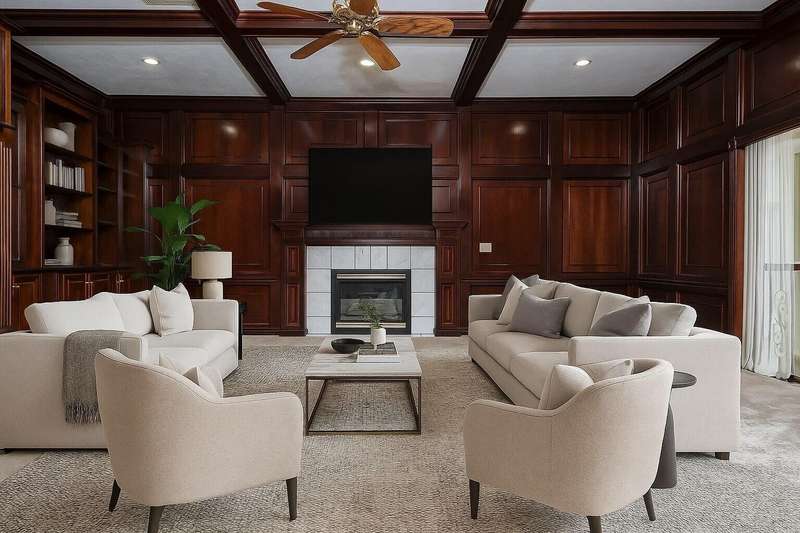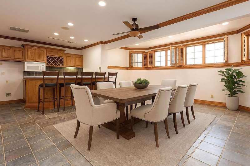 Magnificent Home in Millwood Golf Course Community overlooking the scenic par three, number 5 green, complemented by stunning water features and fountains. Spanning approximately 6,778 square feet, this spacious home offers three levels of luxurious living, featuring 5 bedrooms and 3.5 baths, multiple inviting living areas with 10 to 20-foot ceilings on the main floor, and a sunroom with soaring ceilings that radiates warmth. The finished basement with a full second kitchen is ideal for multi-generational living or entertaining guests. Prepare to be captivated by the exceptional quality and craftsmanship, as this home was originally built as a primary residence the founder of Clifton Custom Homes. Every detail reflects unparalleled attention, from the impressive woodwork to the elegant crown molding. The main floor boasts an updated kitchen complete with stainless steel appliances, granite countertops, and a generous pantry. The abundance of windows ensures that natural light floods both the home and sunroom, creating an inviting atmosphere. The upper level features three spacious bedrooms, including a luxurious primary suite, along with a versatile fifth bedroom/bonus area that can serve as an additional living space, office or cozy den. For outdoor enjoyment and entertaining, a spacious patio is nestled amidst lush landscaping, offering a serene and tranquil setting. The home is ideally situated on a quiet cul-de-sac, perfect for family living and peaceful relaxation. Experience the perfect blend of luxury and comfort in this remarkable home and enjoy living in a fun, family-friendly resort-like community with golf, swimming, tennis, fitness, and social activities all available through millwoodgolf.com. Call today for your private showing and prepare to be impressed!