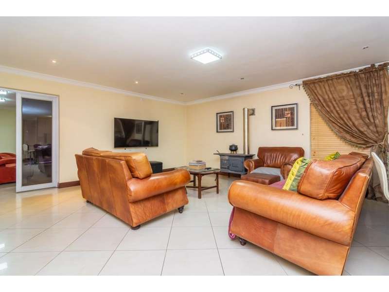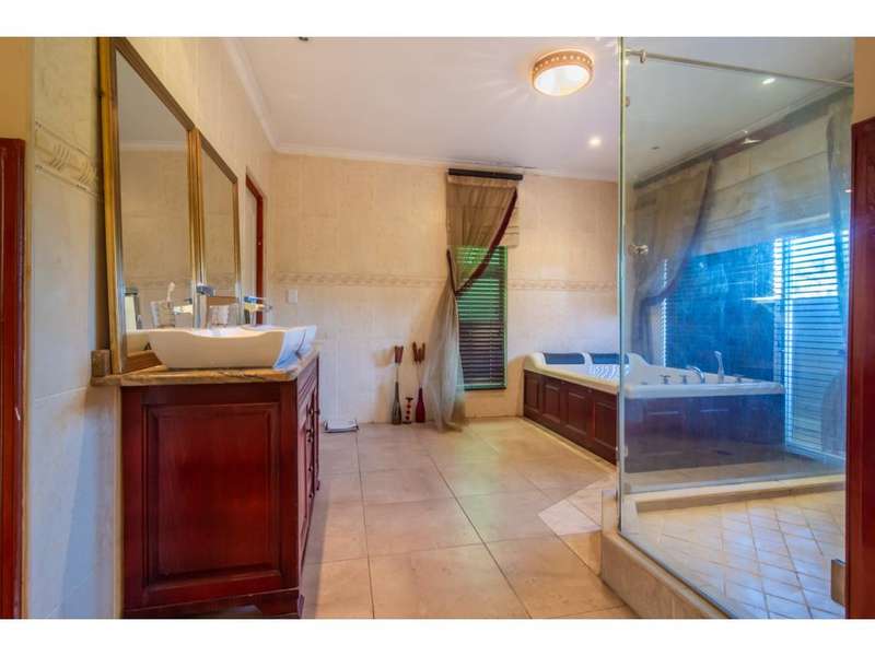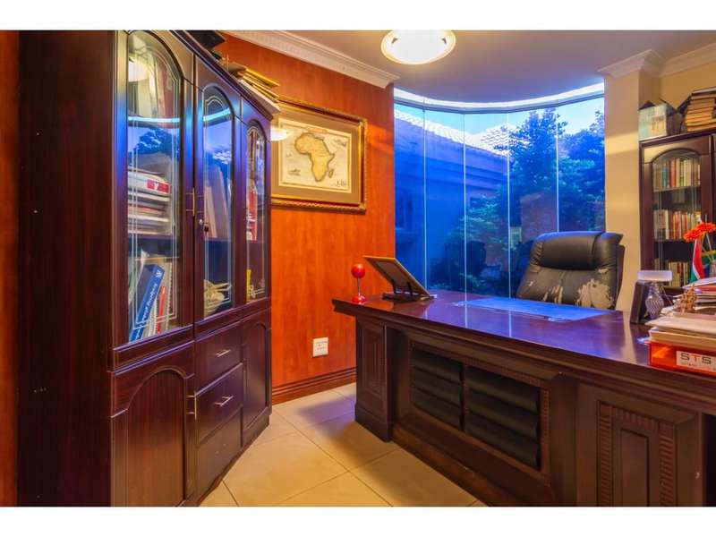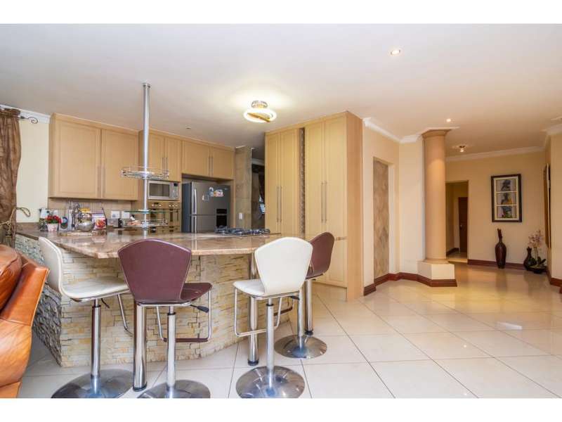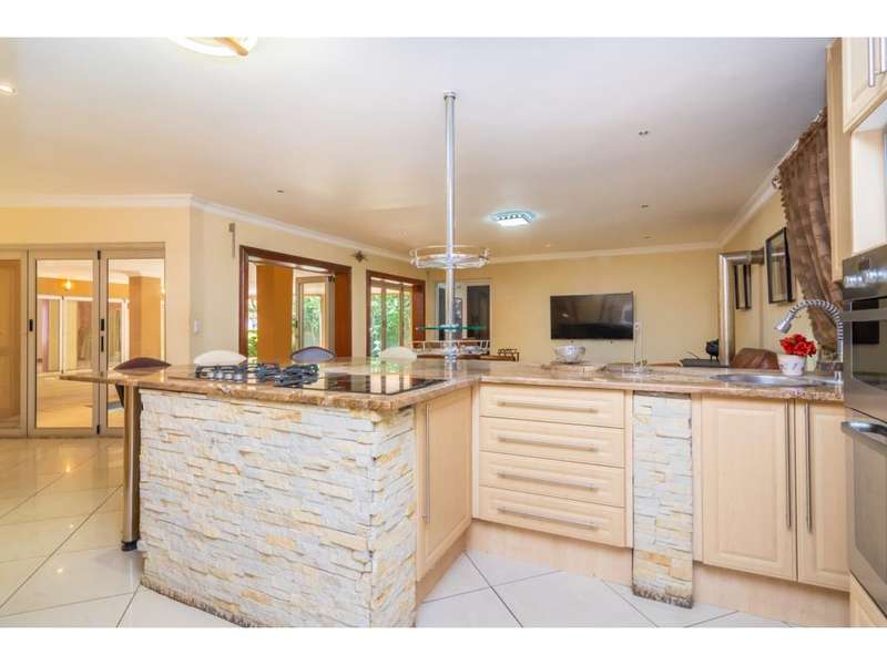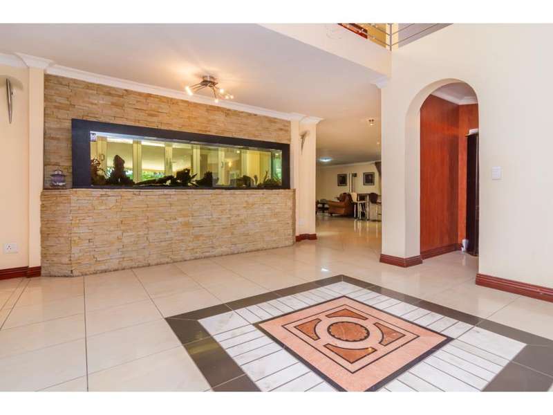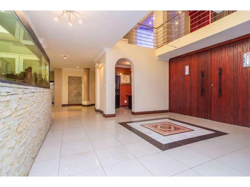 Live the Entertainer's Dream in this Luxurious Family Home! This generous contemporary home in a secure estate offers everything you need for a life of comfort, style, and entertainment. Unwind in 5 spacious bedrooms, all with modern en-suite bathrooms. The large main bedroom is extra luxurious with spa bath and walk in dressing room. Four of the bedrooms share a patio, ideal to enjoy a morning coffee. Prepare culinary masterpieces in a gourmet kitchen with pantry and separate scullery. Immerse yourself in the world of cinema in your very own dedicated home theatre. Host unforgettable gatherings in the large entertainment areas, relax and unwind on the expansive patio, take a refreshing dip in the sparkling undercover pool or enjoy the 2nd patio with a built-in braai. Park your vehicles securely in the double garage with a porte-cochere for additional covered parking. This secure estate provides peace of mind, allowing you to focus on creating lasting memories in your magnificent new home. Don't miss out on this incredible opportunity! Contact me today for a viewing.