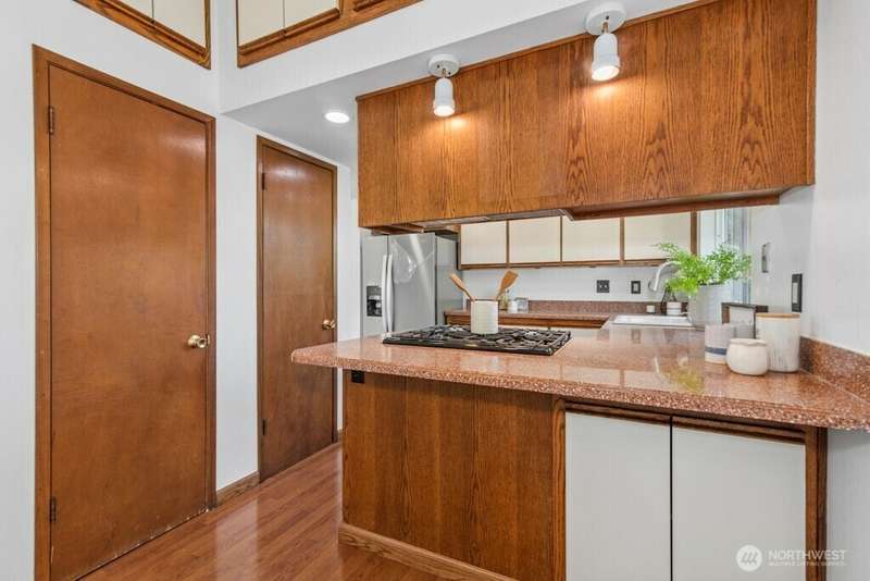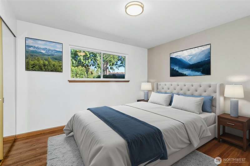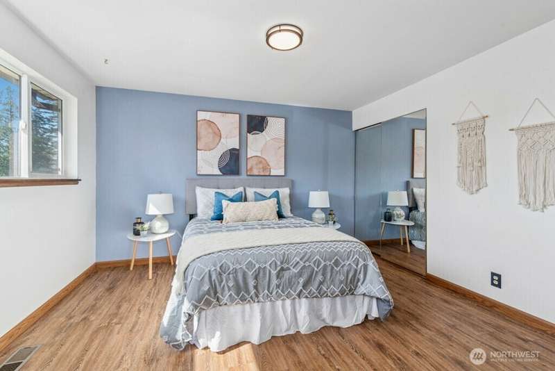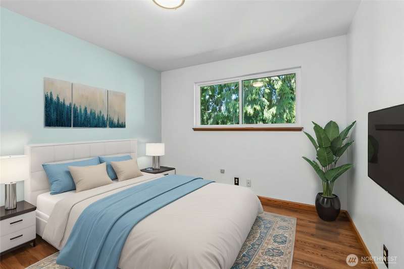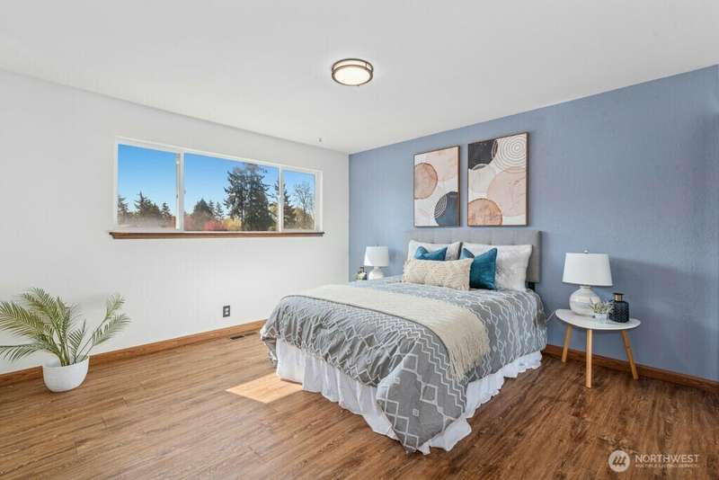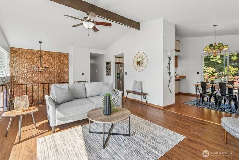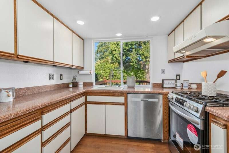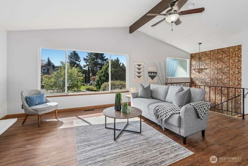 Exceptional two-owner home on a quiet cul-de-sac, boasting significant upgrades for modern living. Enjoy light-filled spaces with a vaulted living room featuring a gas fireplace and park views. The updated kitchen offers new appliances, hard surface counters, a gas range, and a breakfast bar, flowing into a full dining area. The master suite includes an updated bath and dual closets. Find spacious secondary bedrooms and a large downstairs family room with a fireplace, built-ins, and a wet bar. The finished garage features EV charging, built-in storage, and a workbench. Recent upgrades include a newer roof, all new windows and sliders, fresh paint inside and out, new flooring, and a 2021 furnace. Easy access to Valley Medical and HWY 405.