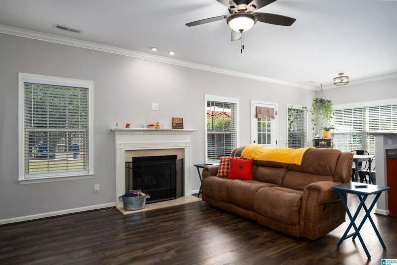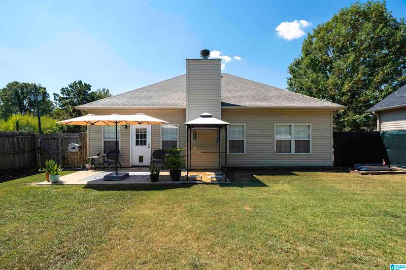 Welcome home to this charming one-level residence in the Meriweather Meadows subdivision! Built in 2006, this 3-bedroom, 2-bathroom home offers 1,177 sq ft of comfortable living space. An open floor plan creates an inviting flow from the living room—highlighted by a marble, wood burning fireplace—to the eat-in kitchen featuring a breakfast bar, pantry, and abundant cabinet & counter space. Hardwood laminate flooring and crown molding add elegant touches throughout. Outside, you’ll enjoy a large, flat, privacy-fenced backyard perfect for play or entertaining. A one-car attached garage, open patio, and a new roof (2023) increase the home’s appeal. Ideally located at the end of a quiet street, this property provides easy access to shopping, dining, and is served by the highly regarded Calera Schools. Your next chapter starts here!